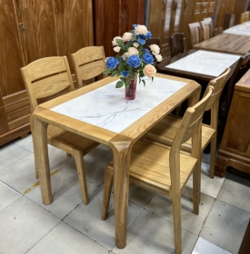 bộ bàn ăn gỗ sồi mặt đá 4 ghế hàng đẹp BA GS 07