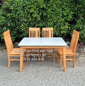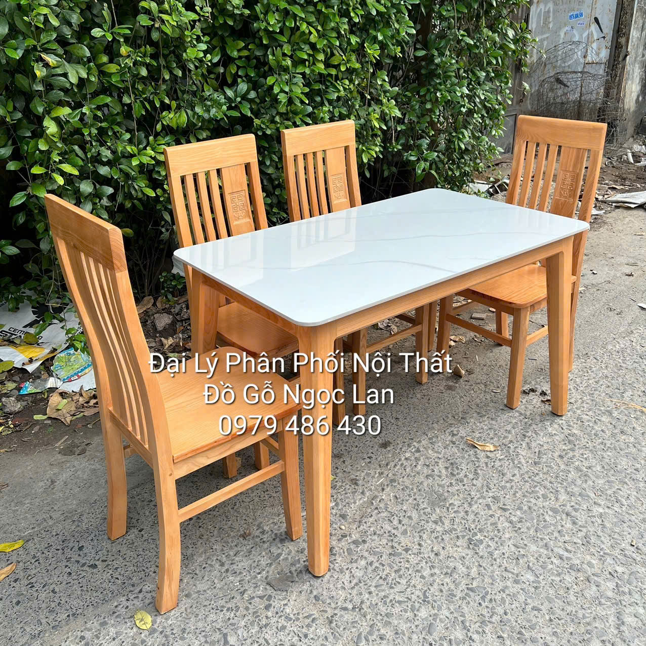 Bộ Bàn Ăn Gỗ Sồi Nga 4 Ghế Mặt Đá Đơn Giản Hiện Đại