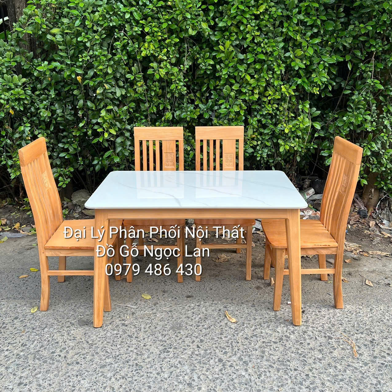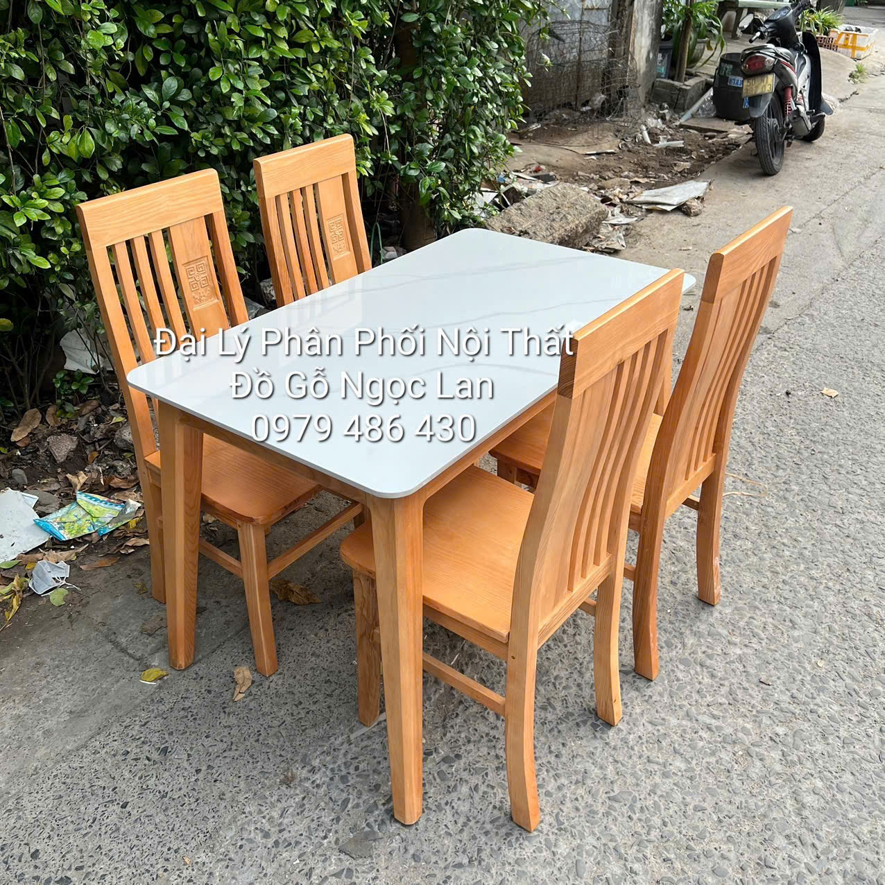 Bàn ăn 4 ghế gỗ sồi Nga mặt đá