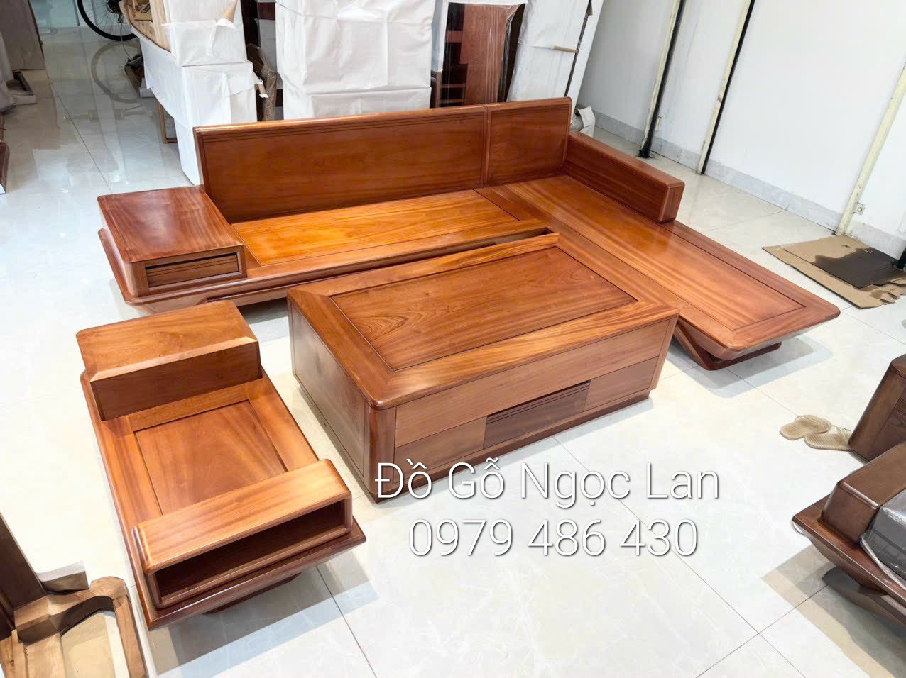 Salon gỗ tự nhiên - sofa góc L gỗ xoan đào - vẻ đẹp tinh tế cho phòng khách nhà bạn