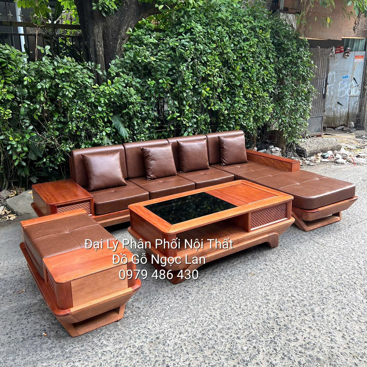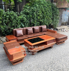 Bộ sofa góc L gỗ xoan đào chân thuyền
