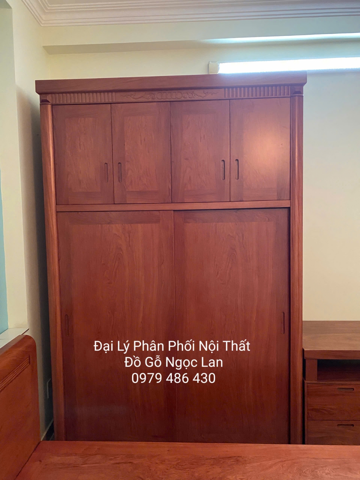 - 1 Tủ quần áo gỗ hương đá 2 cánh lùa cao 2 tầng