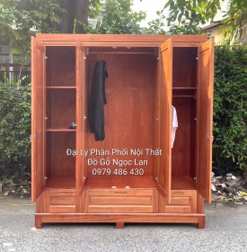 - Tủ quần áo gỗ xoan đào 4 cánh 1m9