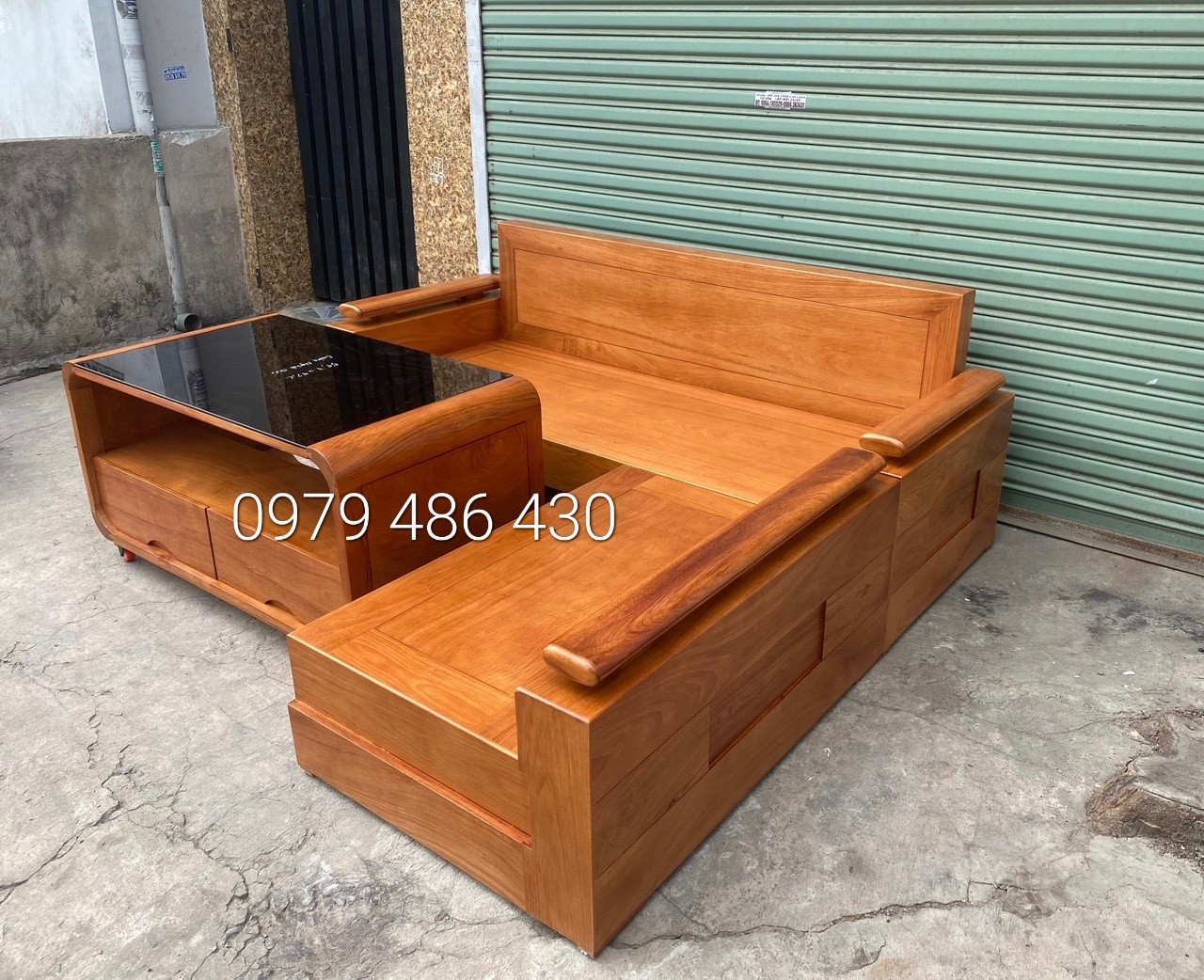 Ghế sofa Góc L Gỗ Sồi Nga Lau Màu Gõ Đỏ 2m x 1m8 - Bàn Hiện Đại