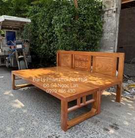 Ghế Gấp Thành Giường 2 Ngăn Kéo Gỗ Xoan Đào Kèm Bàn Trà Mặt Đá - Hiện Đại