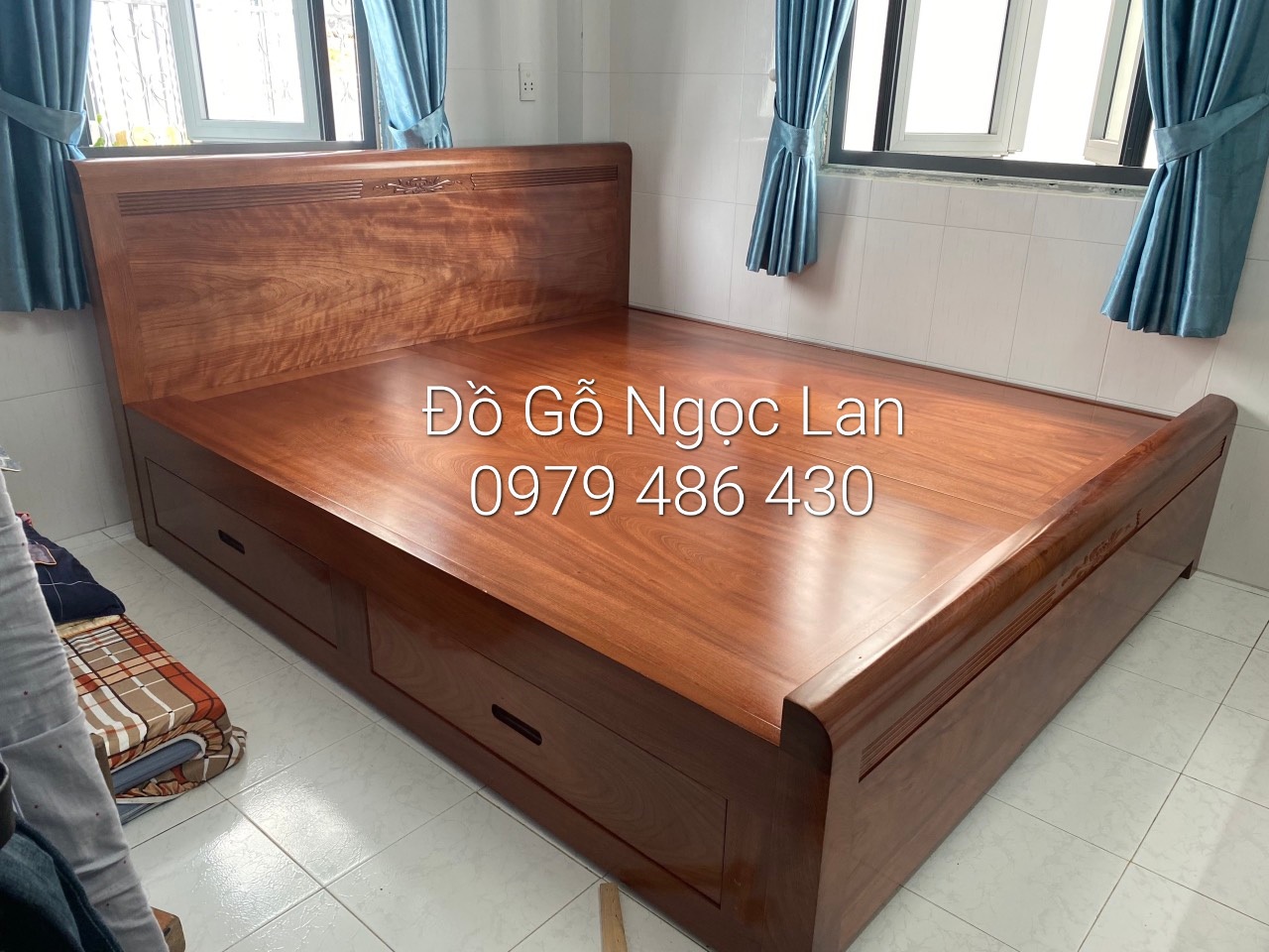 Giường ngủ gỗ xoan đào 2 ngăn kéo phản liền mẫu chỉ hoa