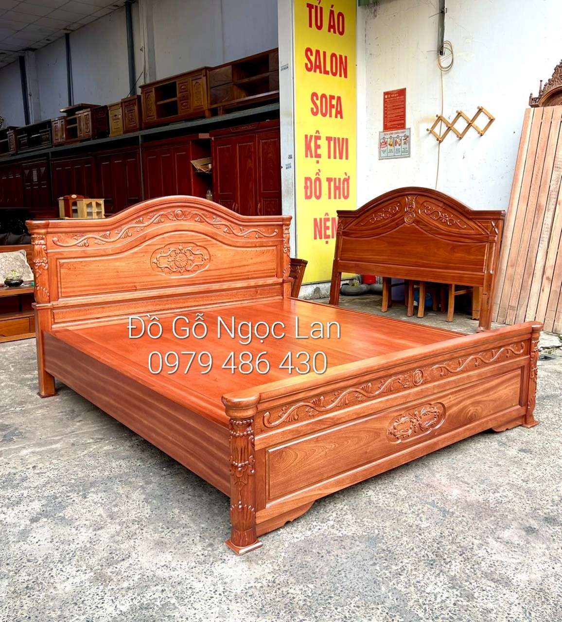 Giường ngủ gỗ xoan đào mẫu nữ hoàng vạt phản