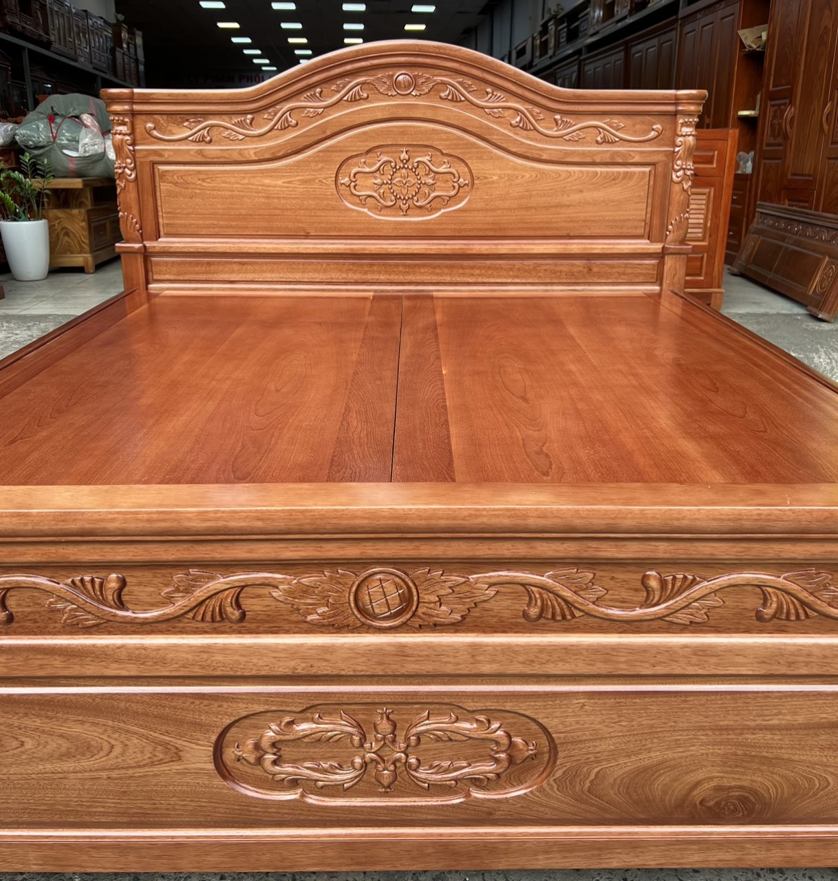 Giường ngủ gỗ xoan đào vạt phản liền thiết kế rất công phu,độc đáo theo phong cách châu âu.Sản phẩm toát lên vẻ đẹp sang trọng ,quý phái.Gồm những họa tiết cổ điển đan xen với hiện đại được điêu khắc tỉ mỉ .Xung quanh bề mặt trơn láng ,tối giản chi tiết và chạy chỉ uốn lượn nhẹ nhàng.