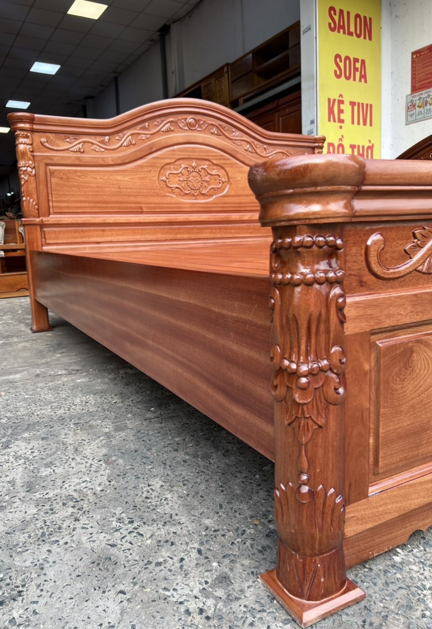 Giường ngủ gỗ xoan đào mẫu nữ hoàng - vạt phản liền