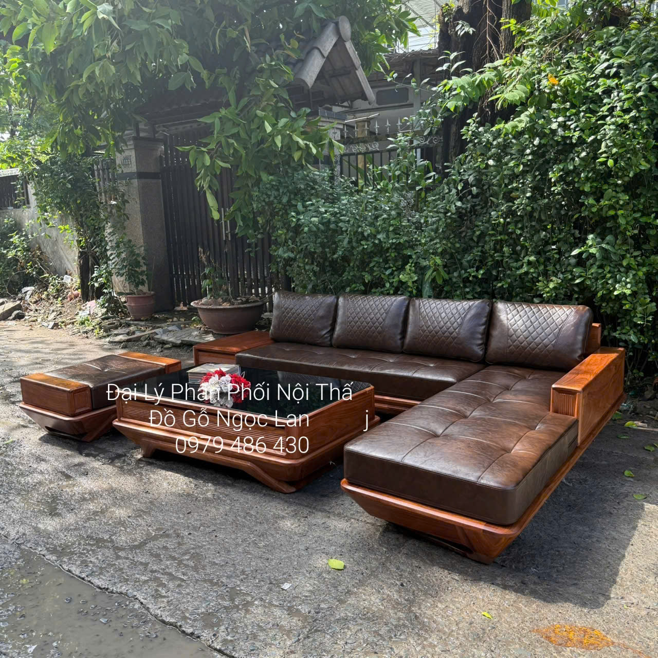 Bộ Bàn Ghế Sofa Gỗ Sồi Nga Màu Óc Chó - Bàn Bom Tay Trứng Hiện Đại 2mx1m8