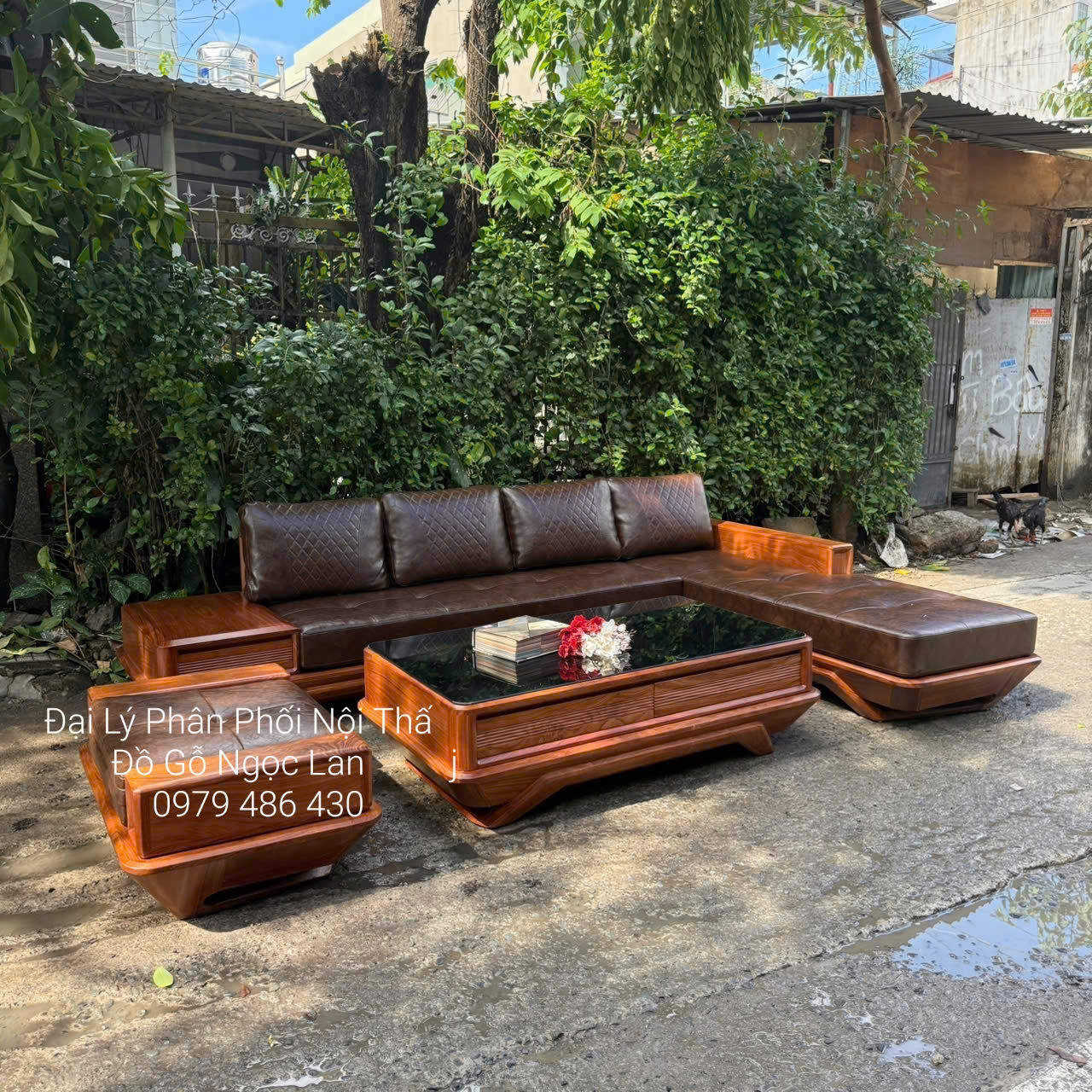 Bàn ghế phòng khách làm bằng gỗ Hương Vàng kiểu góc L 4 món