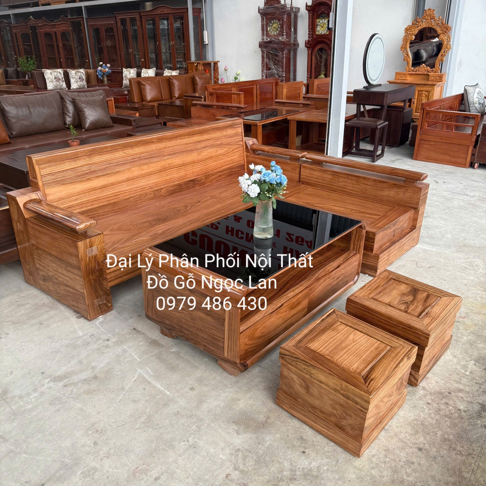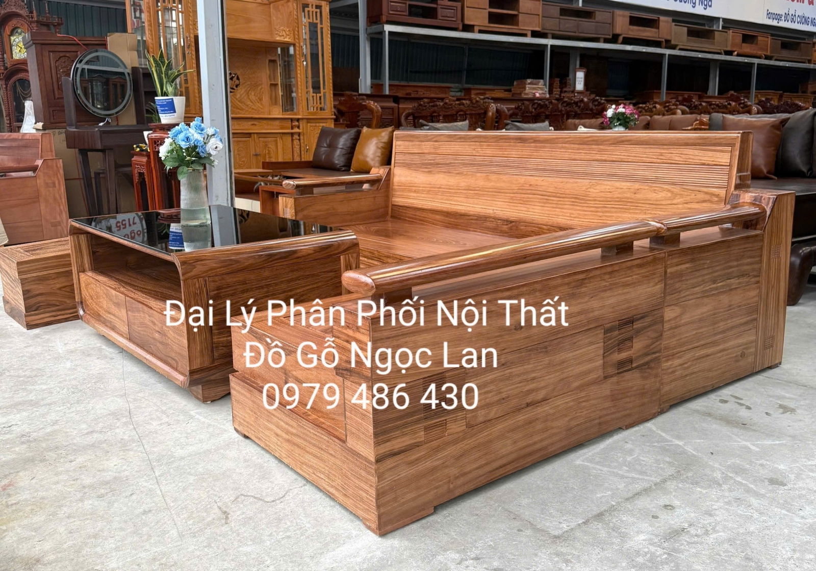 Sofa Gỗ Hương Xám Góc L Tựa Soi 2m1x1m6 Bàn Bom Hiện Đại