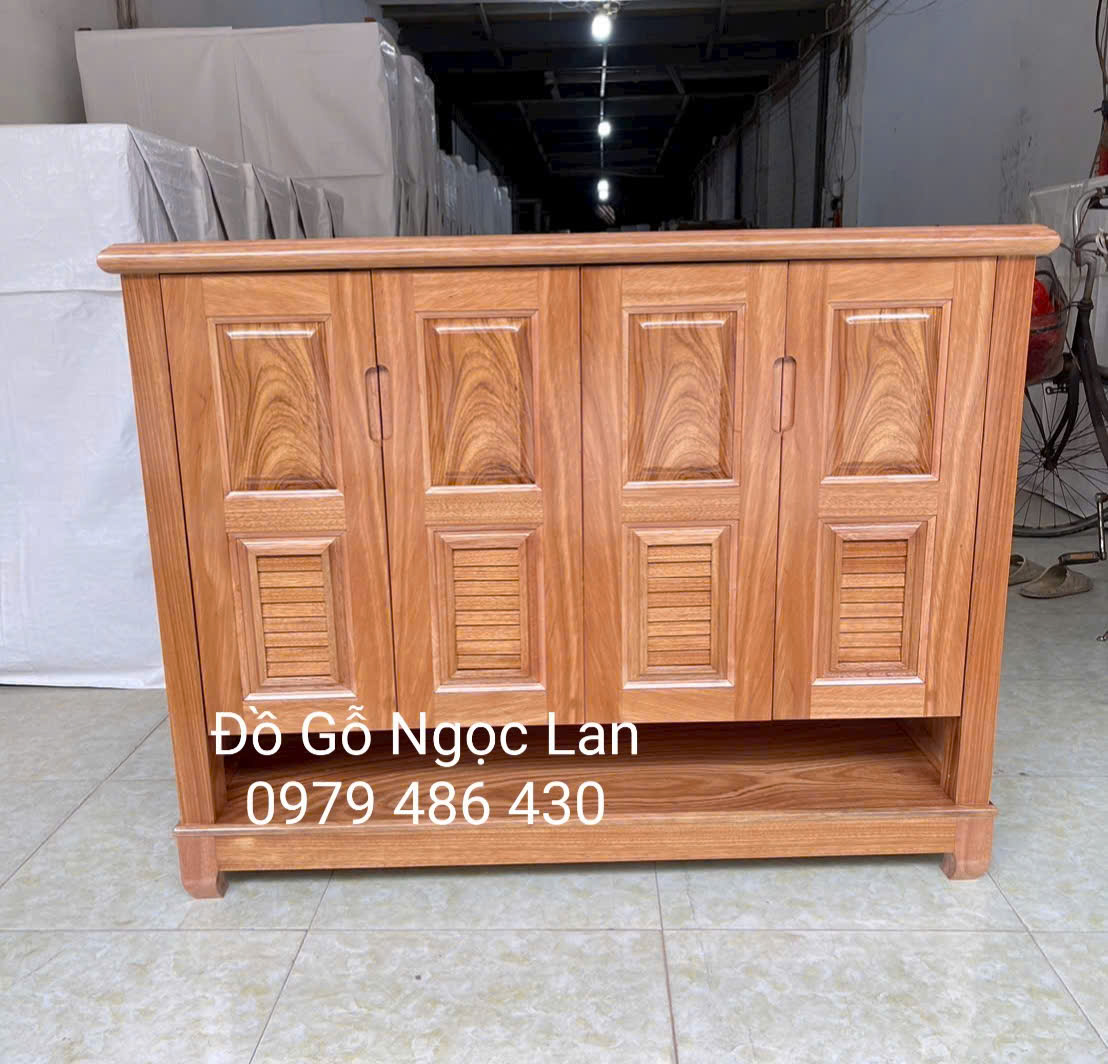 Tủ giày 4 cánh hở chân gỗ hương xám để dép đi trong nhà