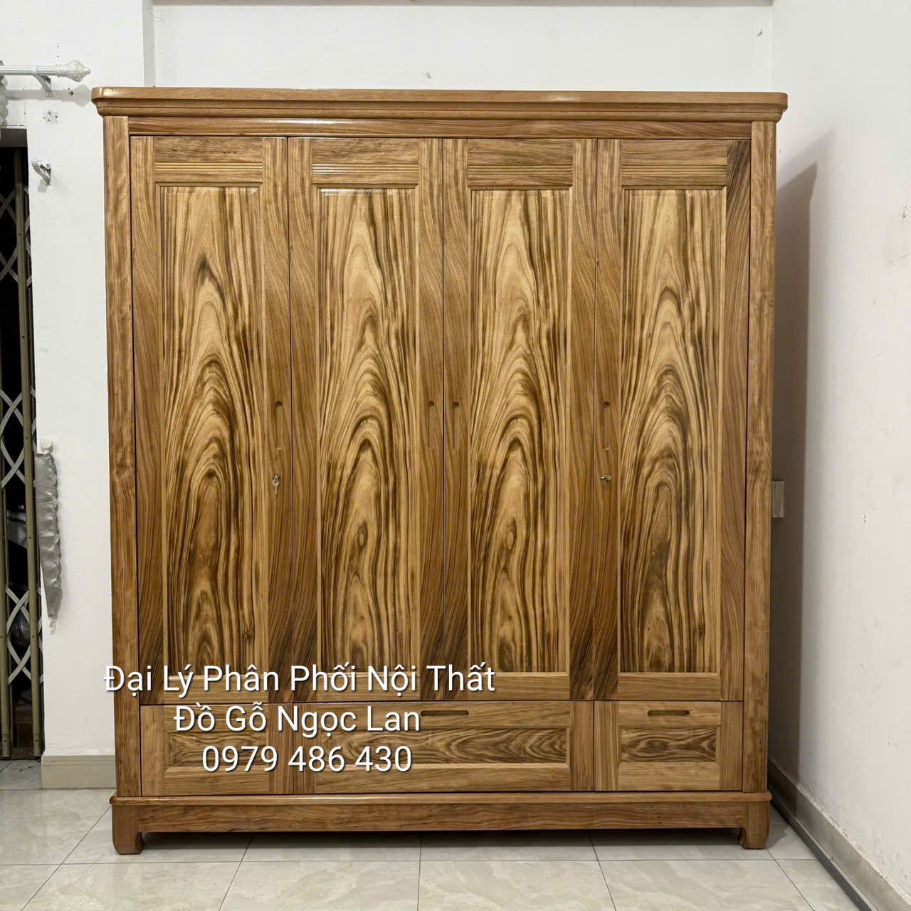 Tủ quần áo 4 cánh gỗ hương xám hiện đại - Đồ Gỗ Ngọc Lan