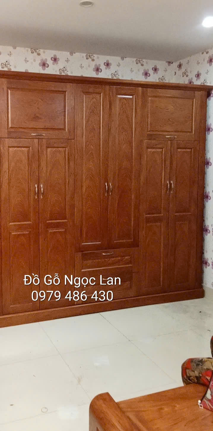 Kích thước tủ quần áo gỗ hương đá hàng đặt 6 cánh cao 2 tầng hiện đại