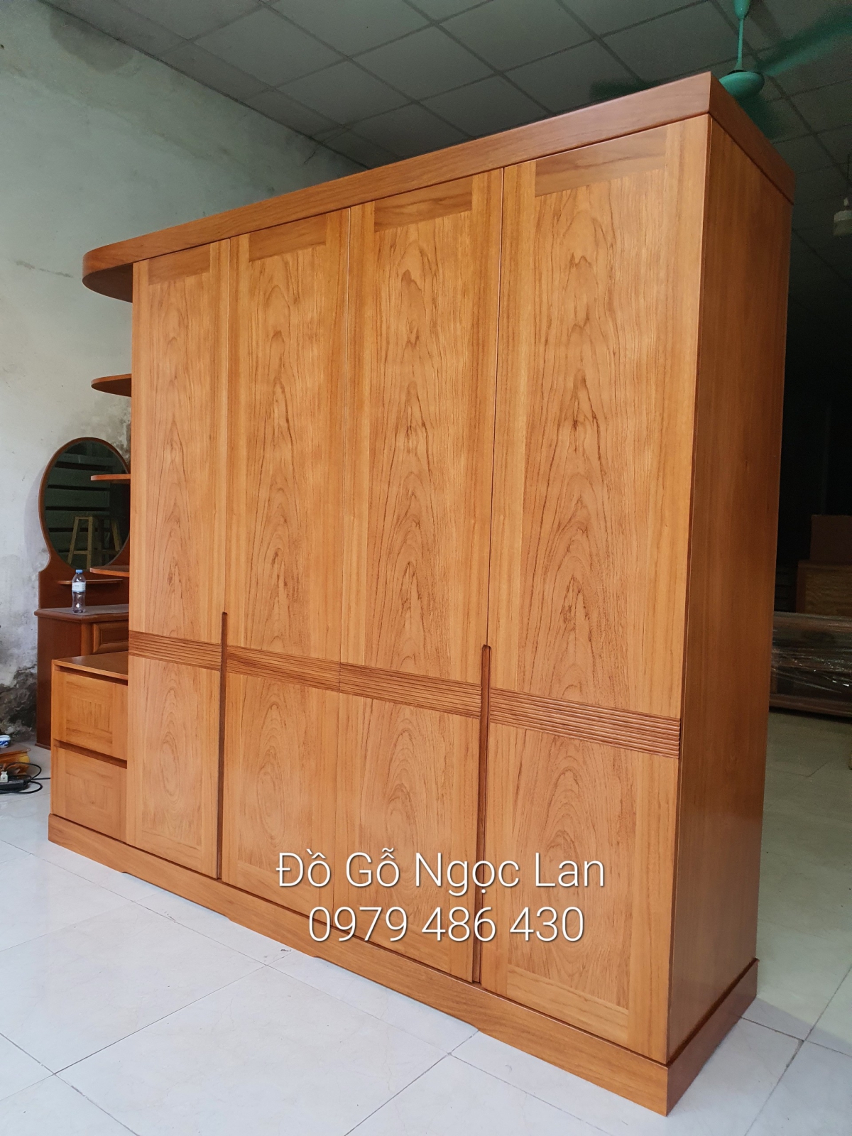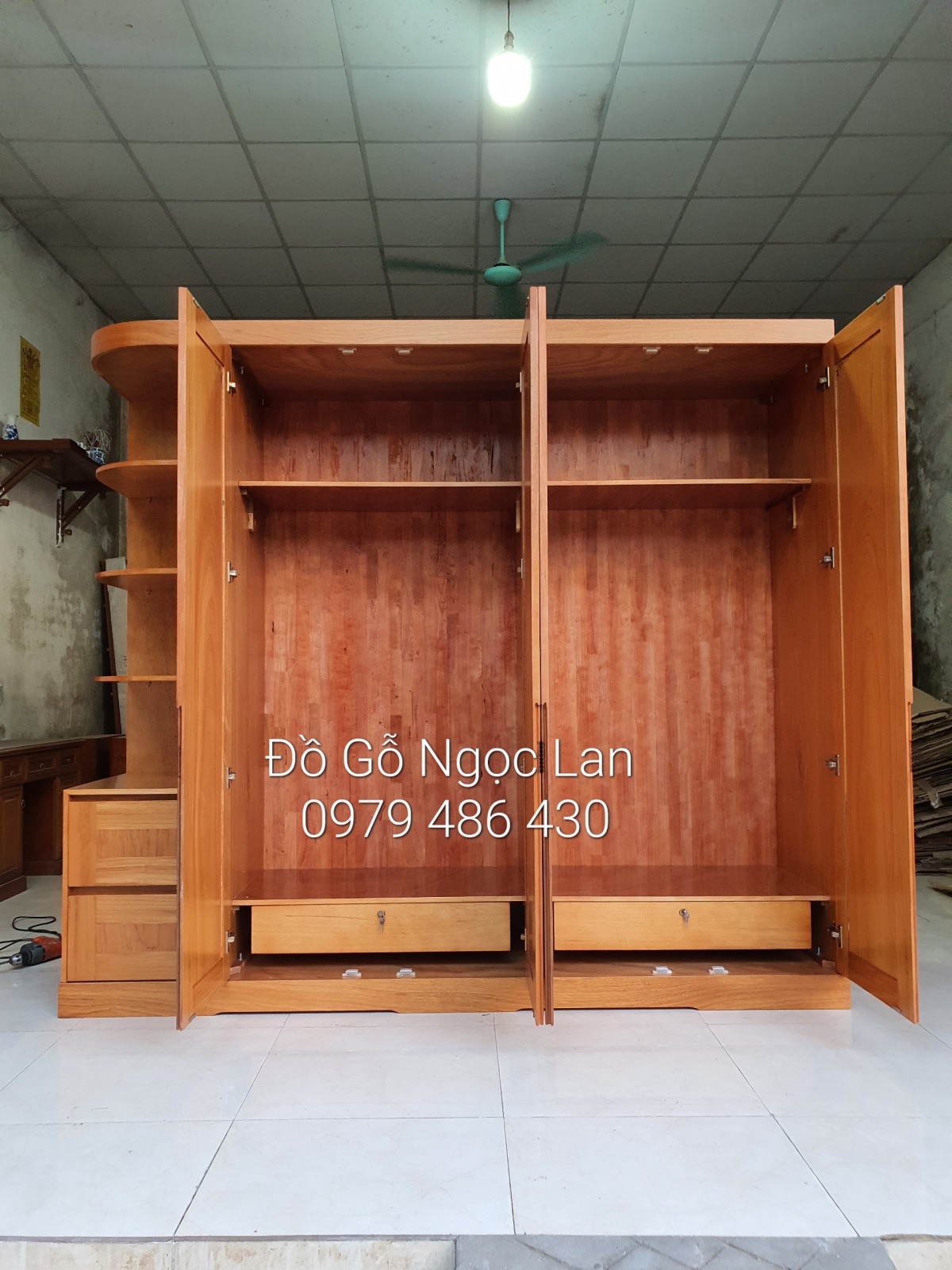 Tủ áo gỗ gõ đỏ 4 cánh kèm góc trang trí - tủ quần áo gỗ tự nhiên tại Đồ Gỗ Ngọc Lan