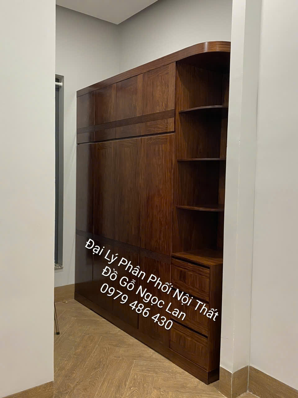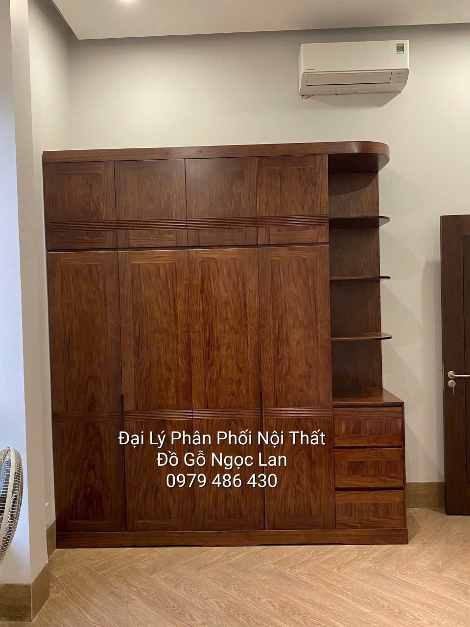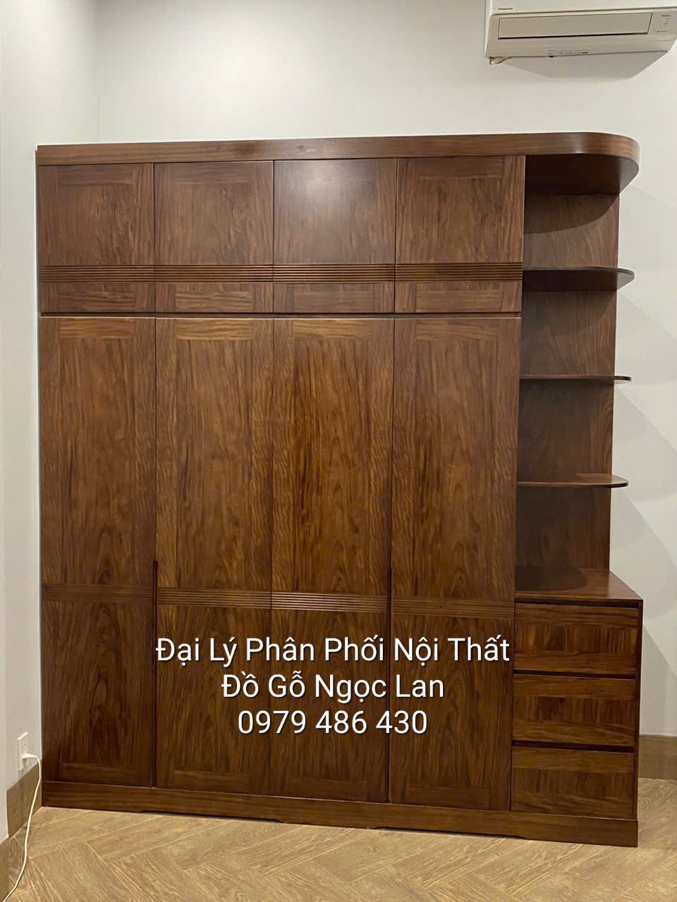 Kích thước tủ áo gỗ hương xám 4 cánh màu óc chó cao 2 tầng