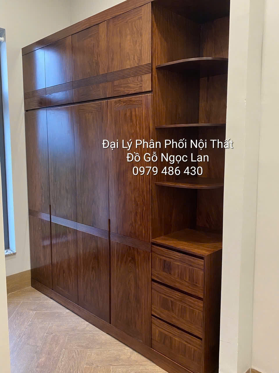 TỦ QUẦN ÁO GỖ HƯƠNG XÁM MÀU ÓC CHÓ 4 CÁNH KÈM GÓC CAO 2 TẦNG HÀNG ĐẶT