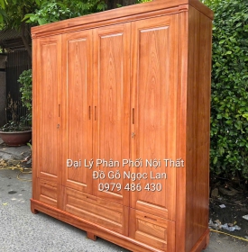 Tủ Quần Áo Gỗ Xoan Đào 4 Cánh Mẫu Trơn - Hiện Đại