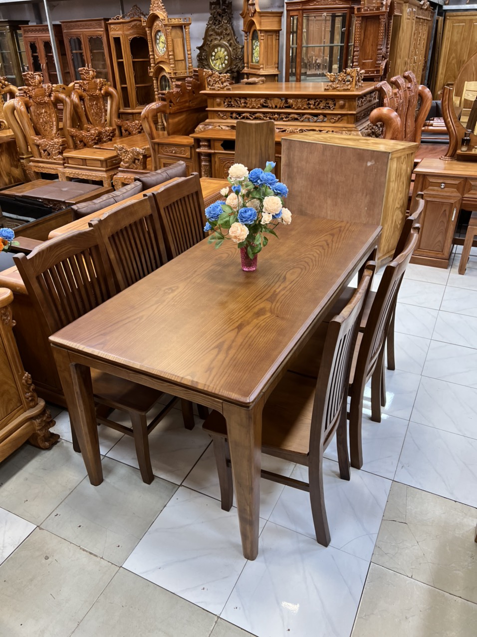 Bàn ăn 6 ghế gỗ sồi lau màu óc chó BA GS 05