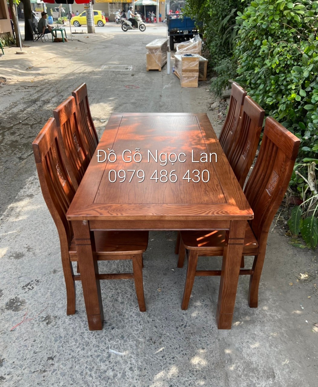 Bàn ăn gỗ sồi nga lau màu óc chó hiện dại - 6 ghế đẹp - giá rẻ TP HCM