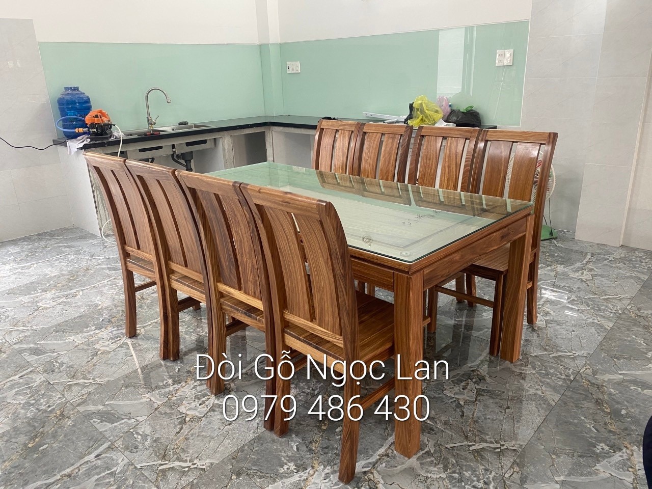 Dài 1m8 x Rộng 90cm x Cao 73 cm + 8 ghế