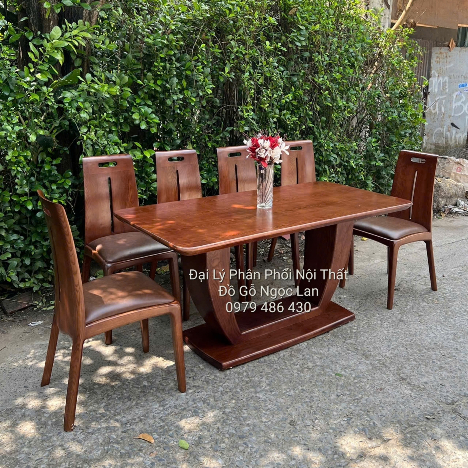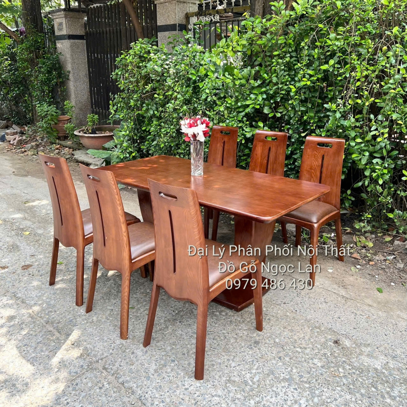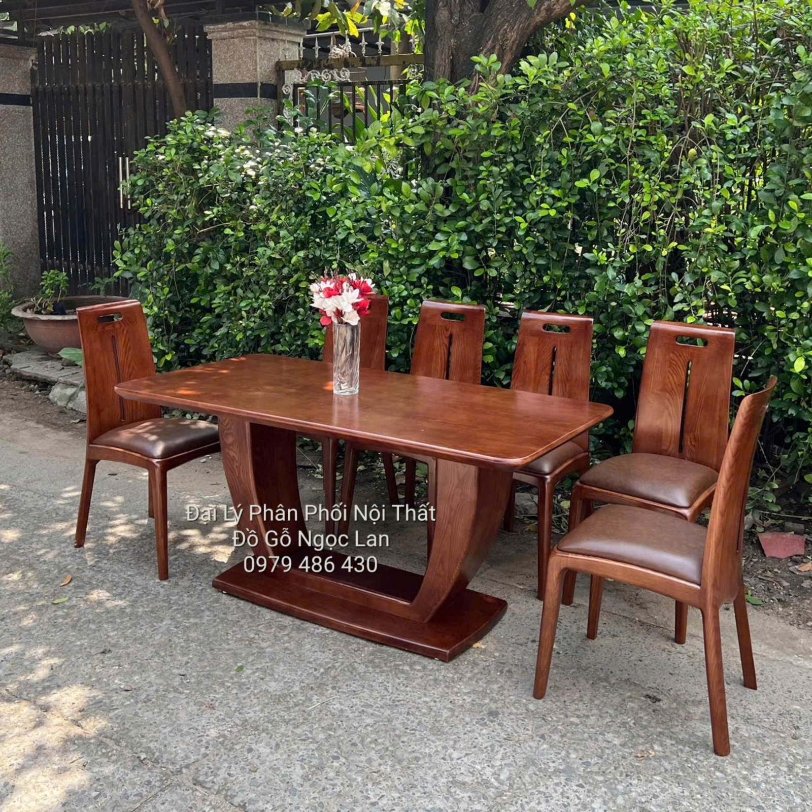 Bàn Ăn 6 Ghế Gỗ Sồi Nga Lau Màu Óc Chó Chân Choãi Sang Trọng - Hiện Đại