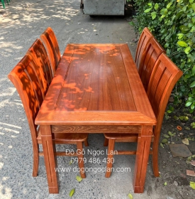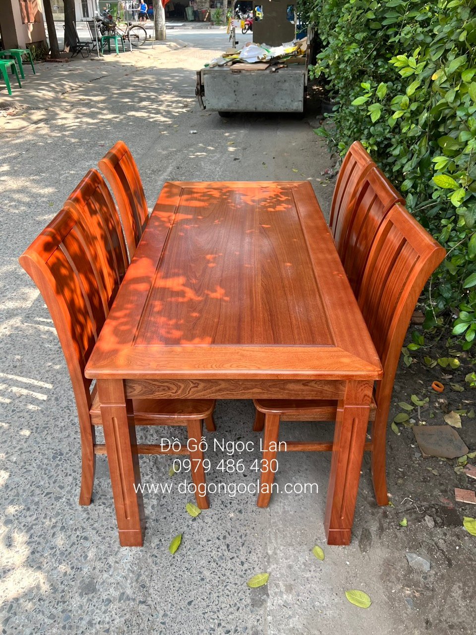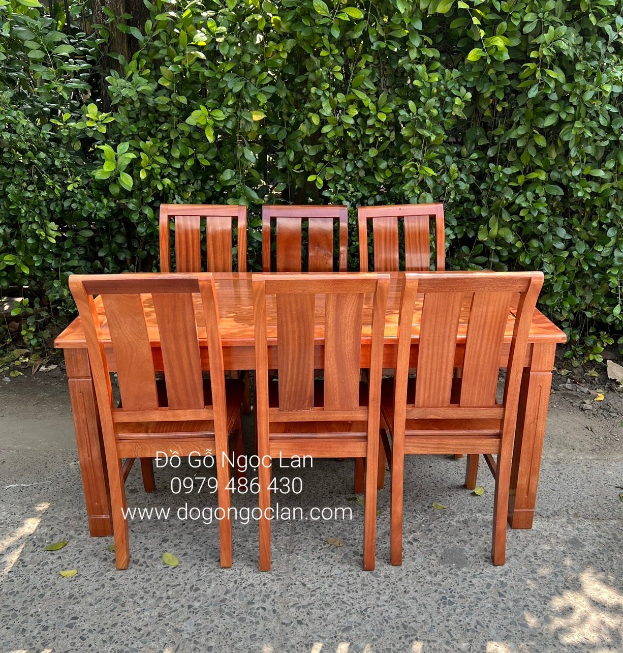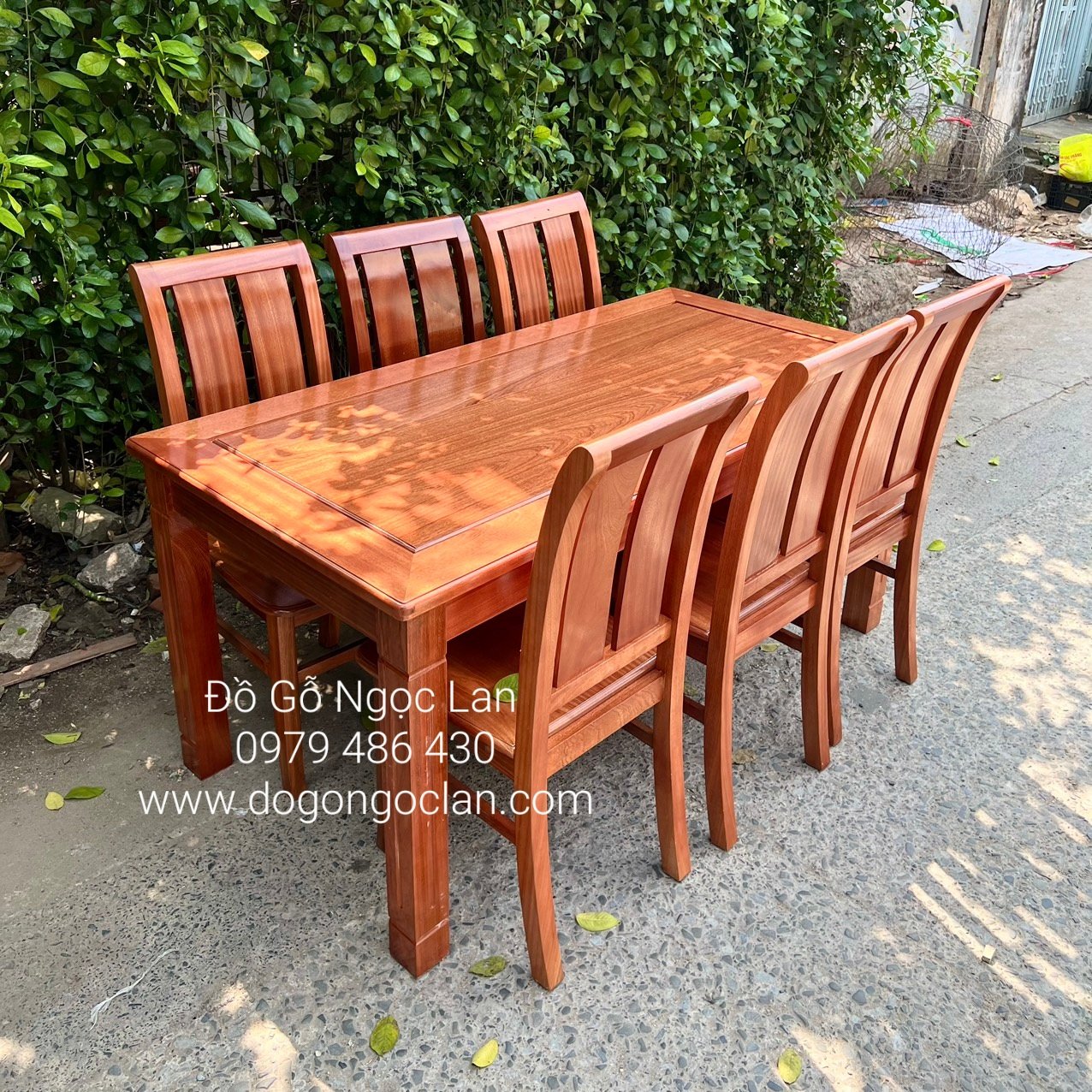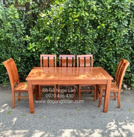 BÀN ĂN GỖ XOAN ĐÀO 6 GHẾ - MẶT LIỀN 1M6 BA 0051