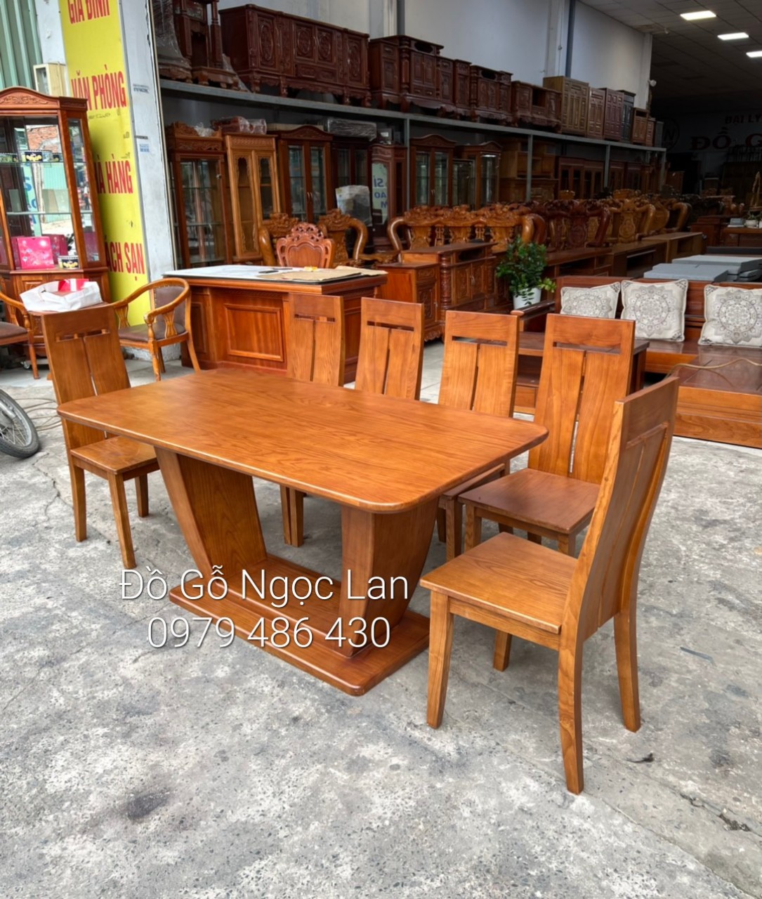 Bàn ăn6 ghế gỗ sồi màu hàng cao cấp BA GS 14