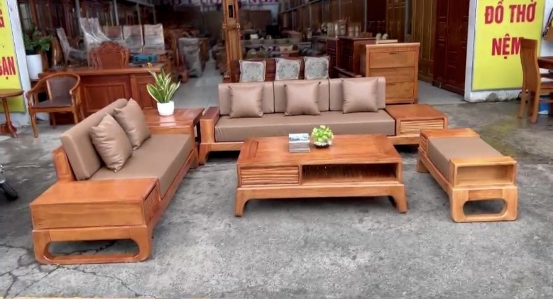 Bàn ghế sofa gỗ gõ đỏ cao cấp - 2 văng kèm nệm