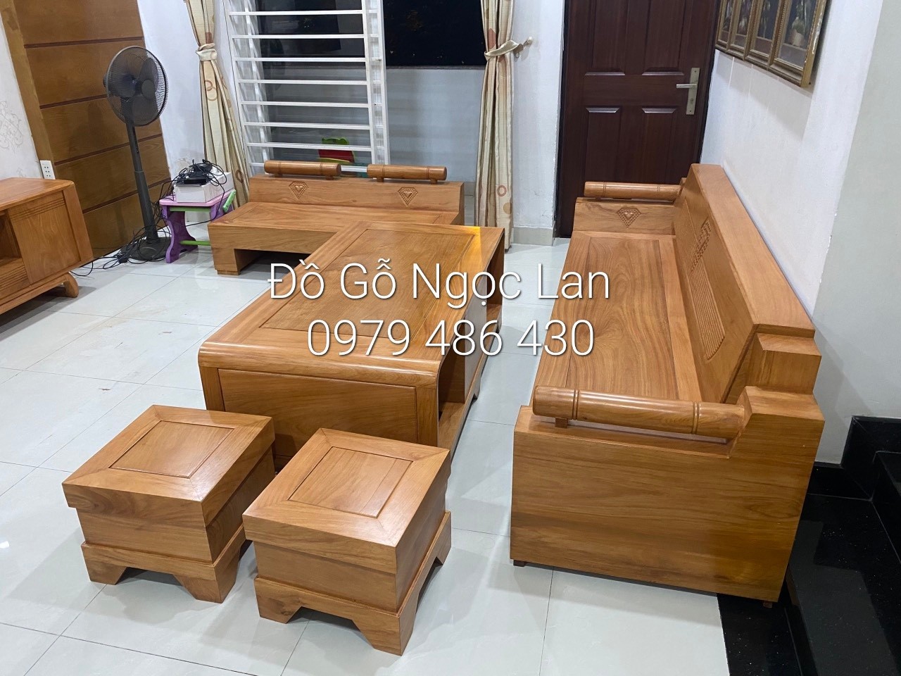 Bàn ghế sofa gỗ gõ đỏ góc L 2m44 x2m - mẫu kim cương