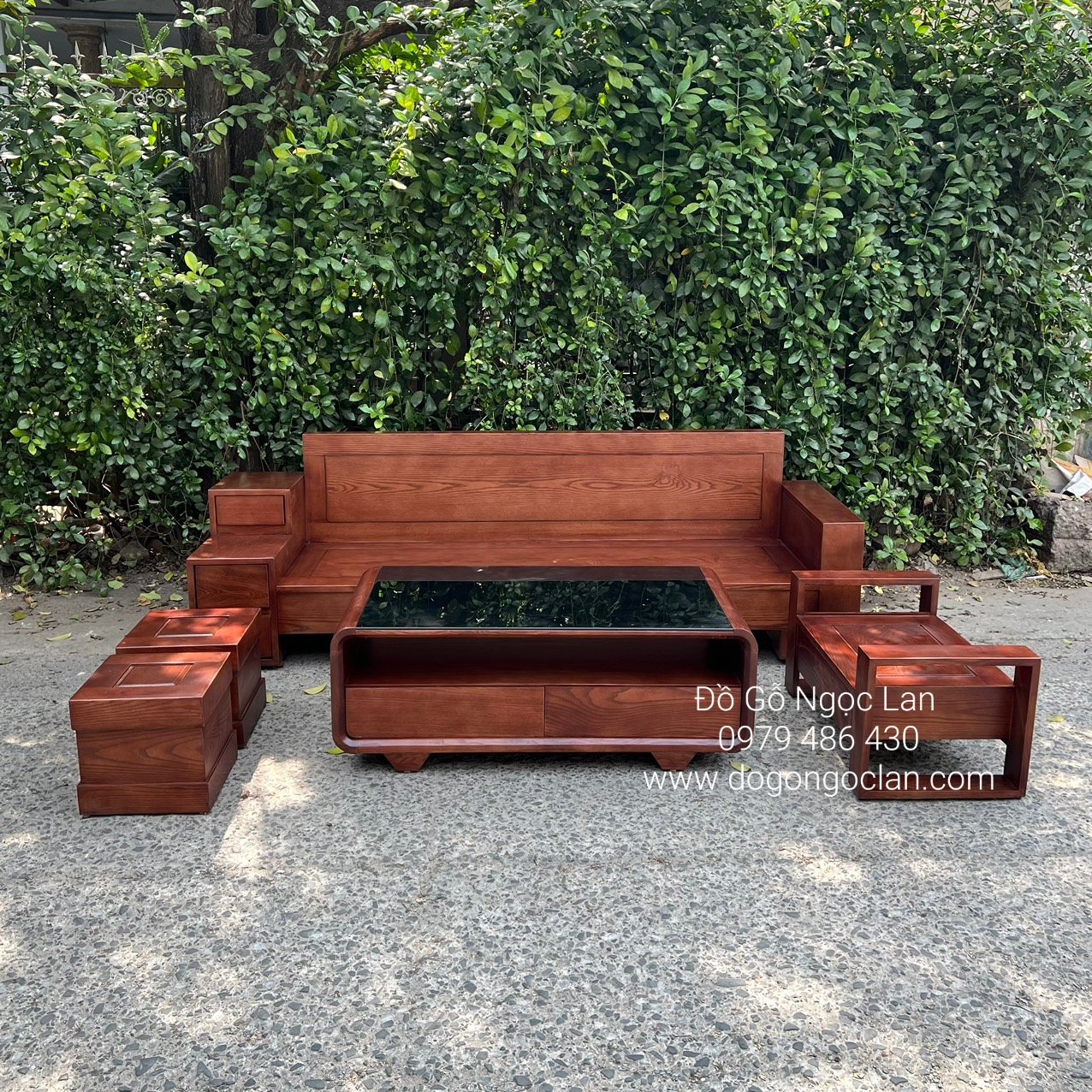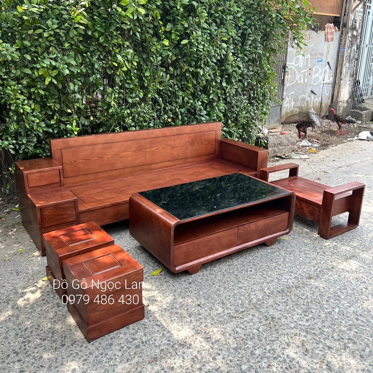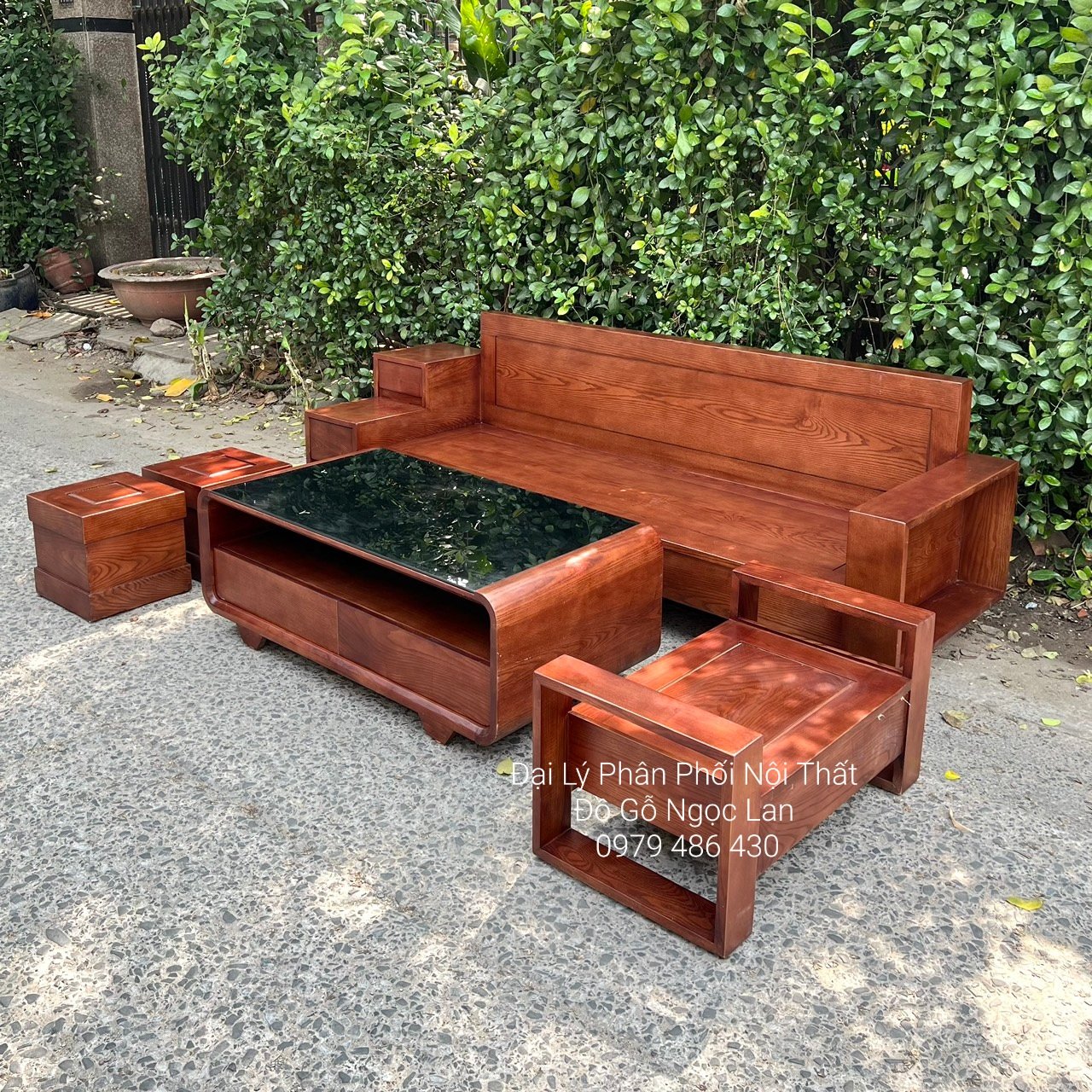 Bộ Bàn Ghế Phòng Khách Gỗ Sồi Nga Màu Óc Chó 2 Văng Chân Thuyền Hiện Đại