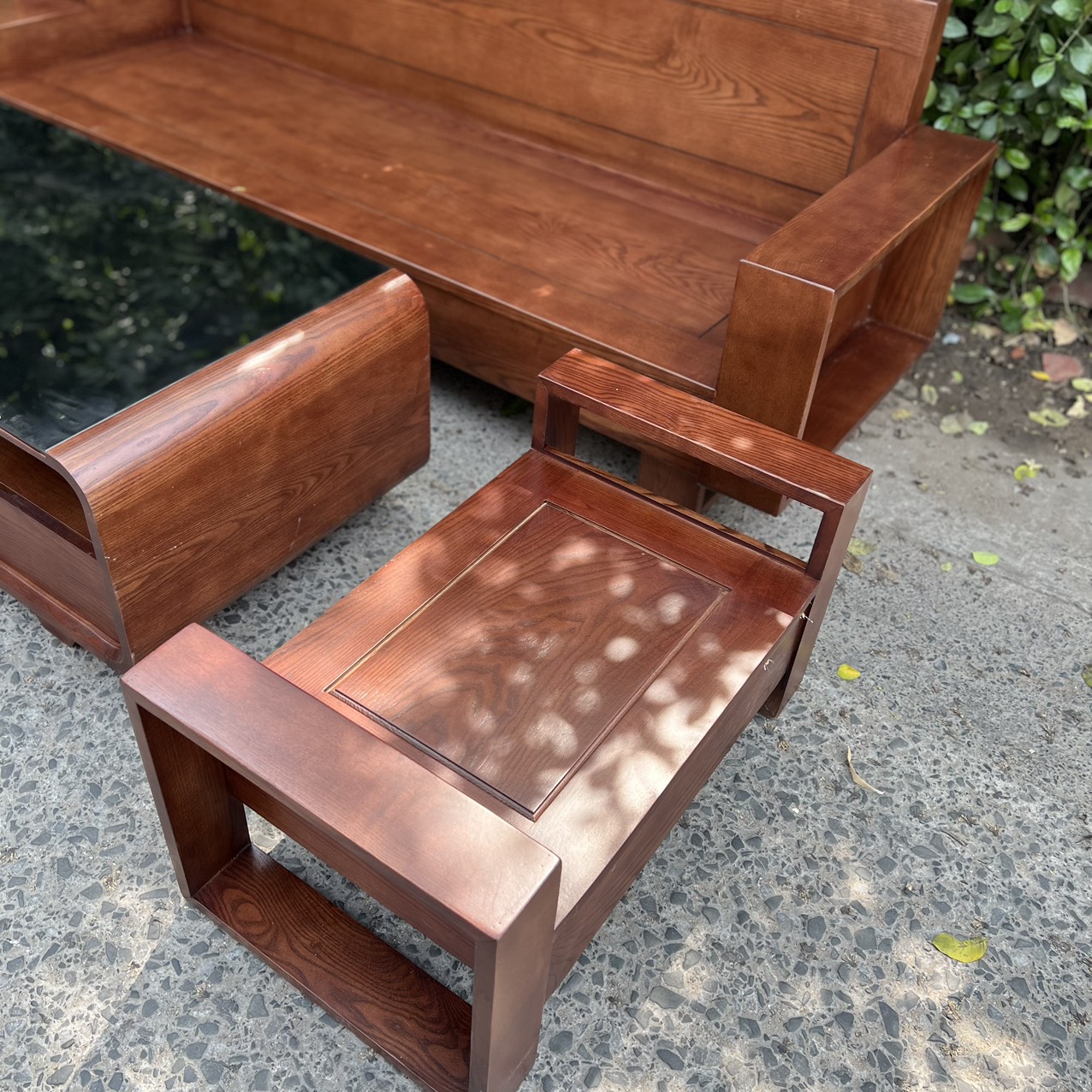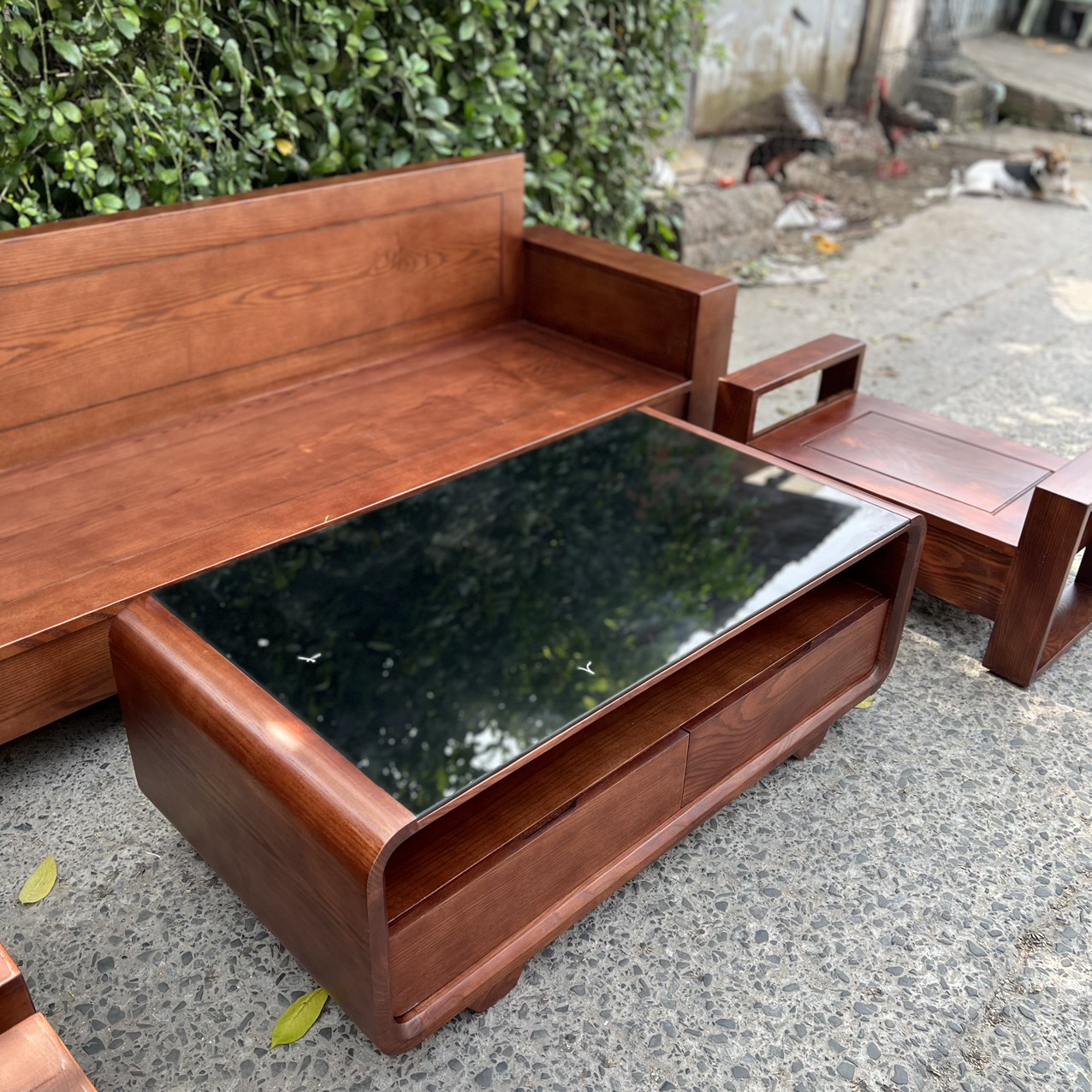 BÀN GHẾ SOFA GỖ SỒI NGA 3 CHỖ NGỒI -5 MÓN MÀU ÓC CHÓ