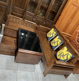 Bộ Bàn Ghế Sofa Gỗ Sồi Nga Màu Óc Chó - Bàn Bom Tay Trứng Hiện Đại 2mx1m8