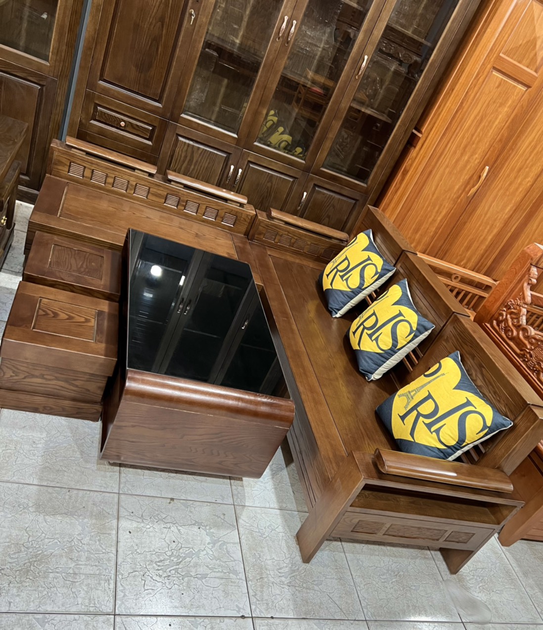 Bộ Bàn Ghế Phòng Khách Gỗ Sồi Nga Màu Óc Chó 2 Văng Chân Thuyền Hiện Đại