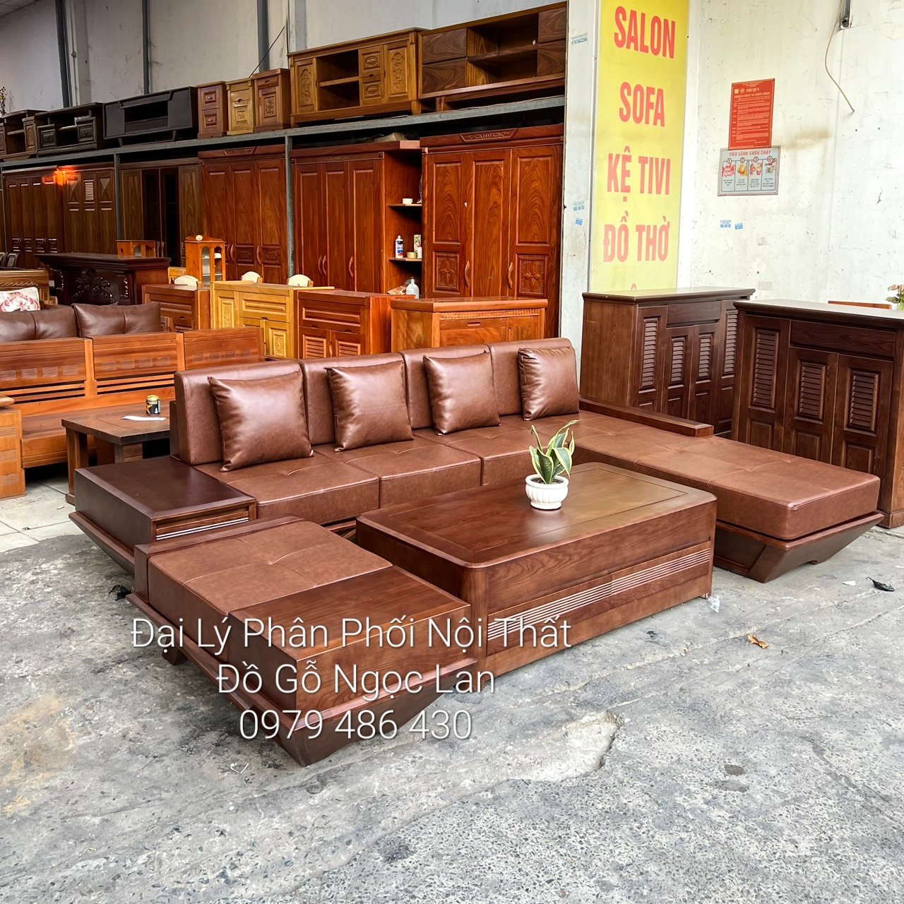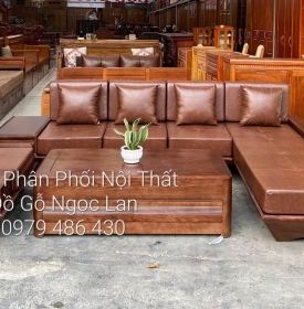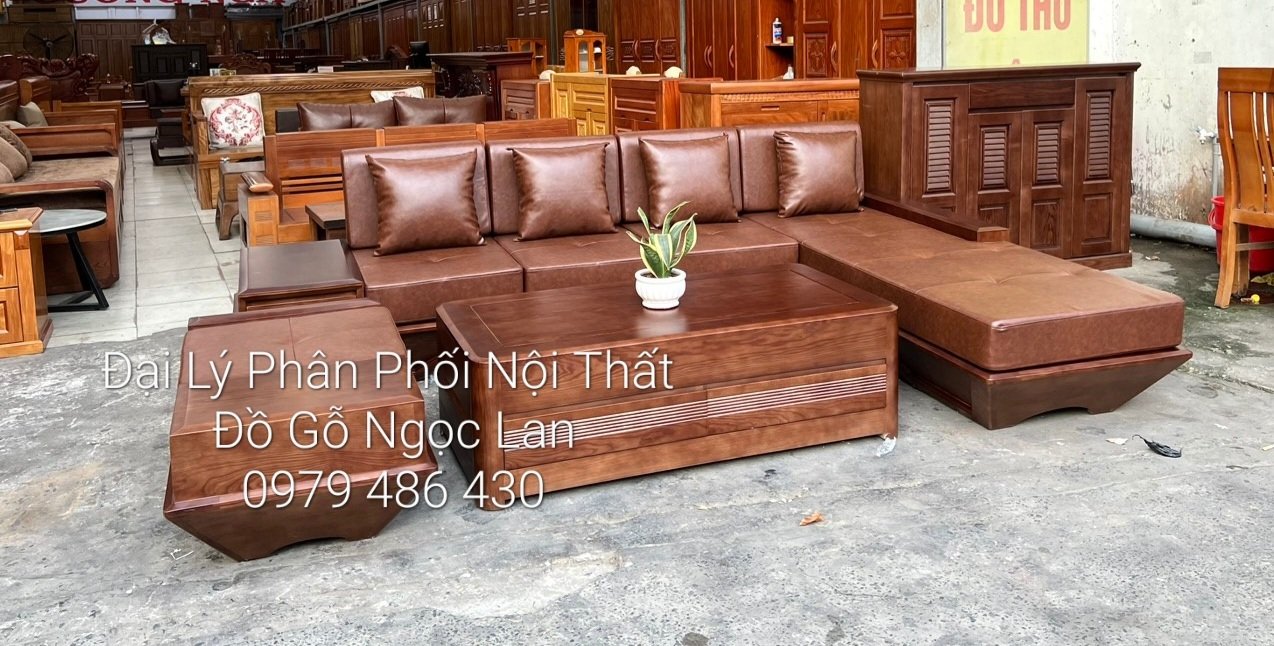 Bàn Ghế Sofa Góc L Gỗ Sồi Nga Chân Thuyền Hiện Đại 2m8x1m8