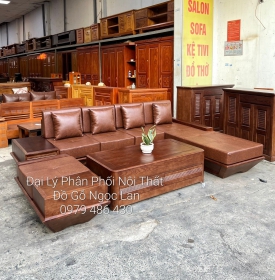 Bộ Bàn Ghế Sofa Gỗ Sồi Nga Màu Óc Chó - Bàn Bom Tay Trứng Hiện Đại 2mx1m8