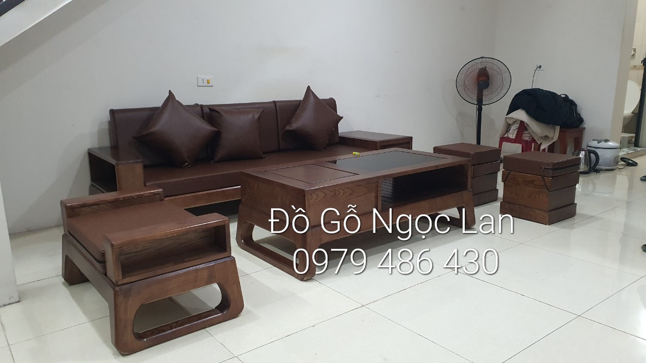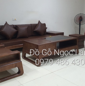 Bộ Bàn Ghế Phòng Khách Gỗ Sồi Nga Màu Óc Chó 2 Văng Chân Thuyền Hiện Đại