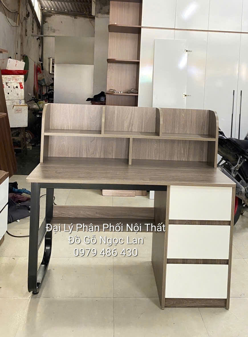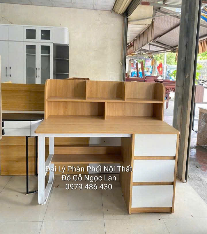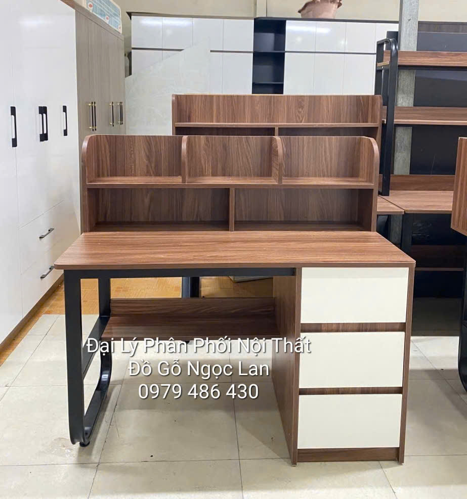 Bàn Học Sinh Gỗ Công Nghiệp Chân Sắt Giá Rẻ Kèm Kệ Sách