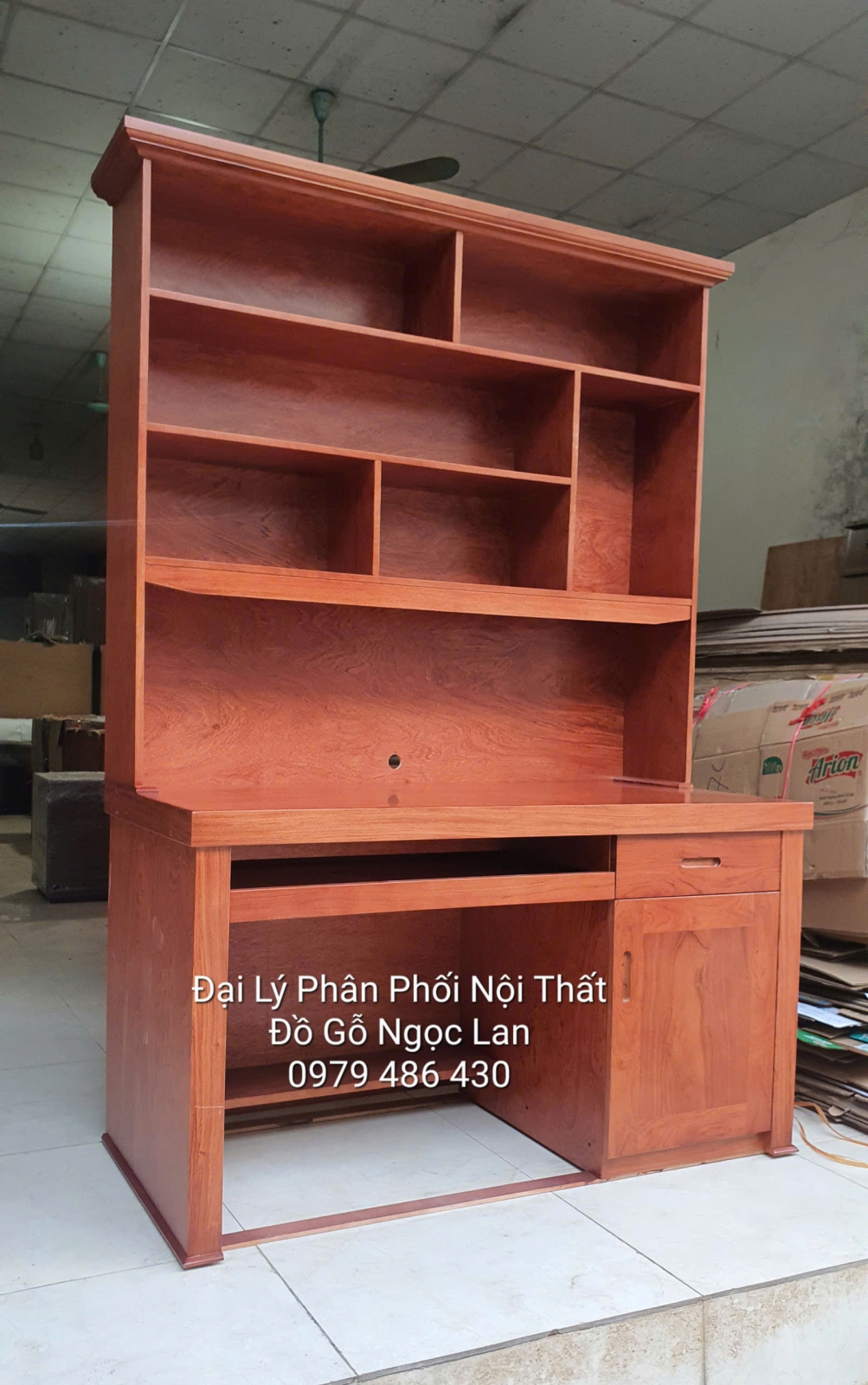 * Bàn dài 1m2 x Rộng 60cm x Cao bàn 75cm ( cao cả bàn và giá sách 2m )
