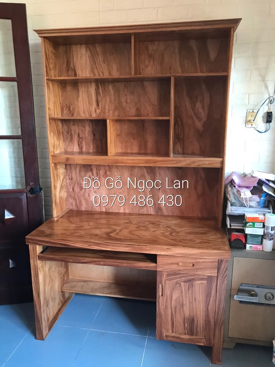 Bàn học sinh gỗ hương xám 1m2 kèm giá sách hiện đại