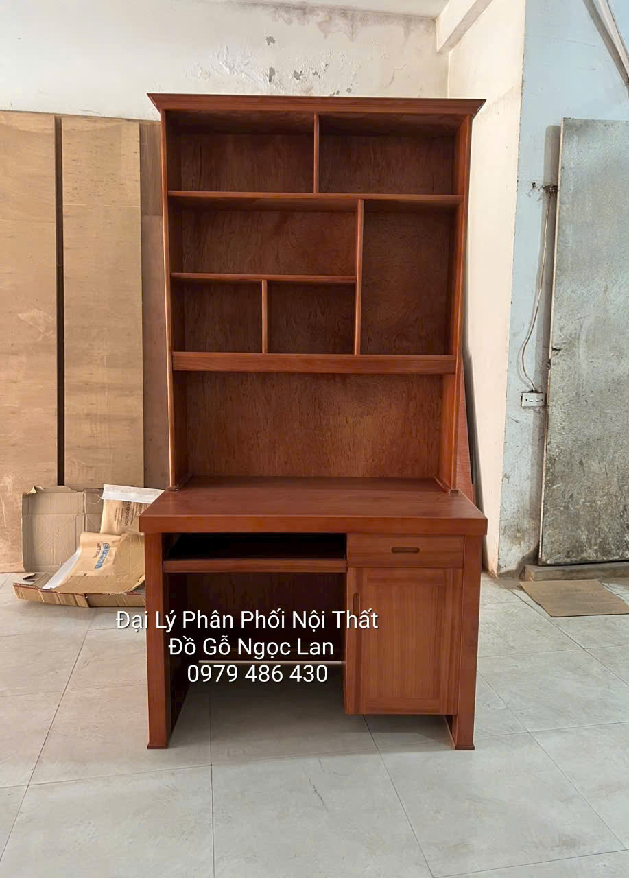 Bàn Học Sinh Gỗ Xoan Đào 1M Kèm Kệ Giá Sách Bền Đẹp