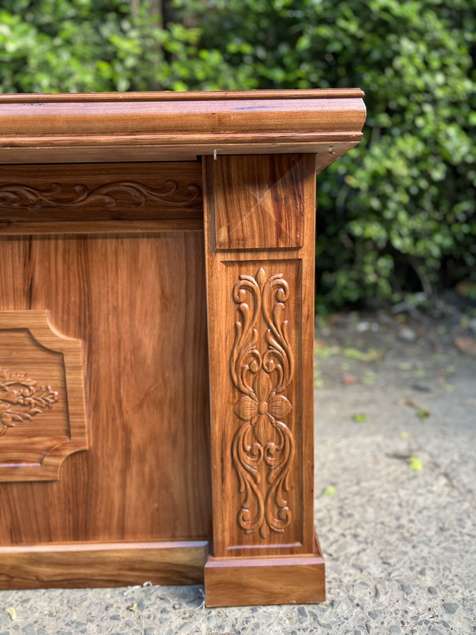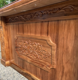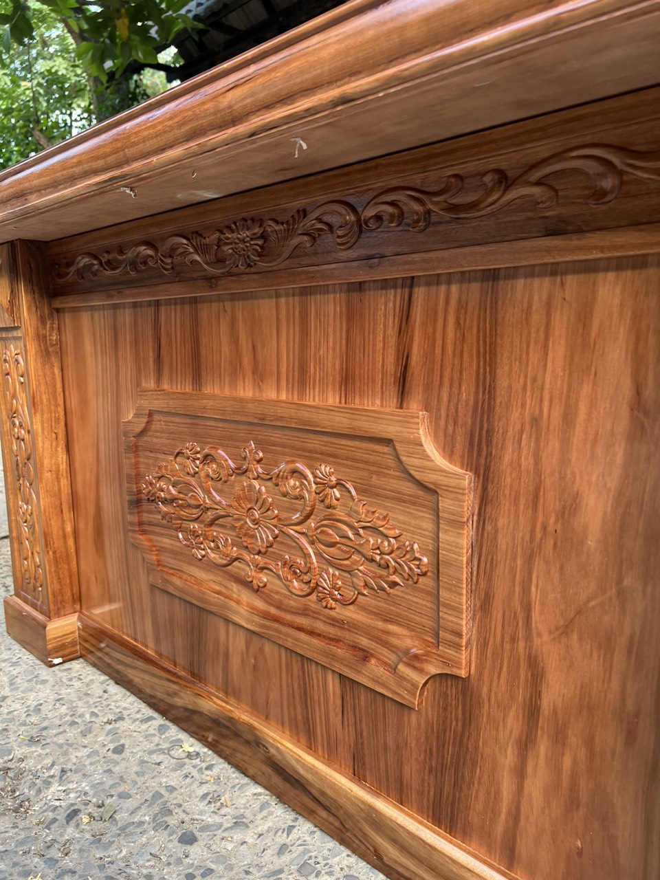 Bàn làm việc gỗ Hương Xám mẫu hoa dây BLV 04