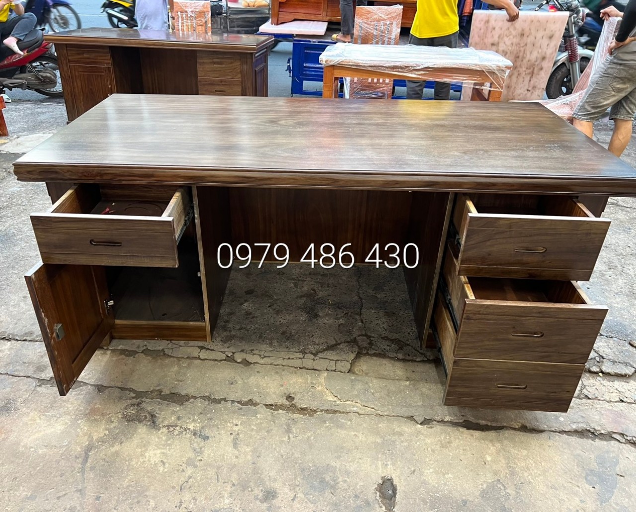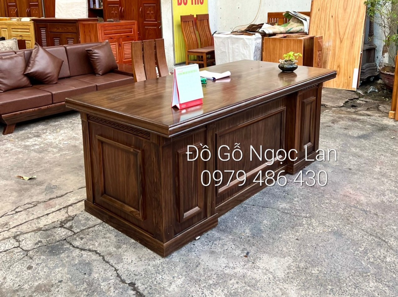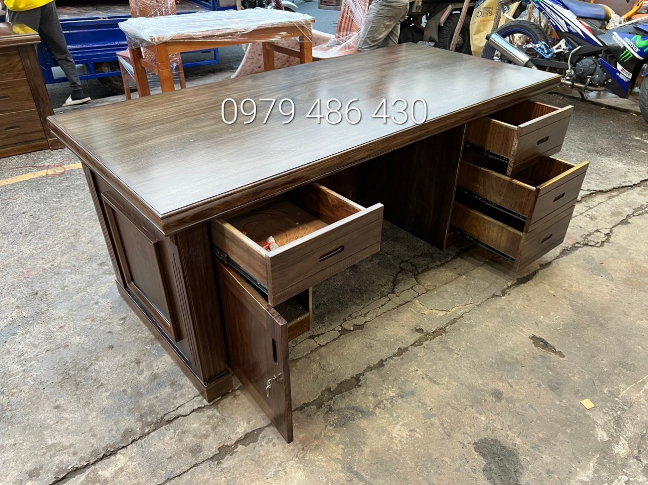 BÀN LÀM VIỆC GIÁM ĐỐC GỖ HƯƠNG XÁM 1M6 MÀU ÓC CHÓ - MẪU BẮT CHỈ