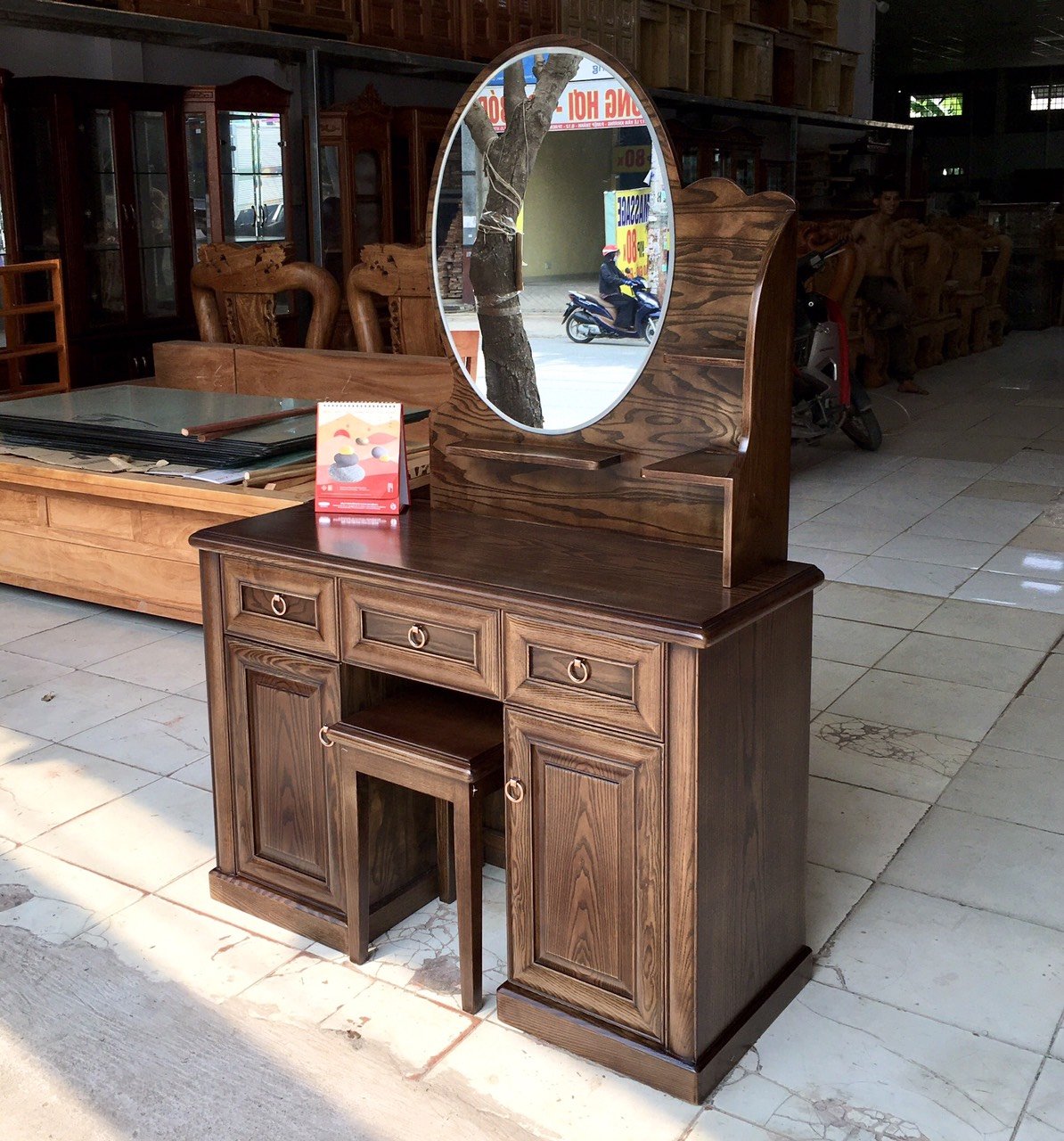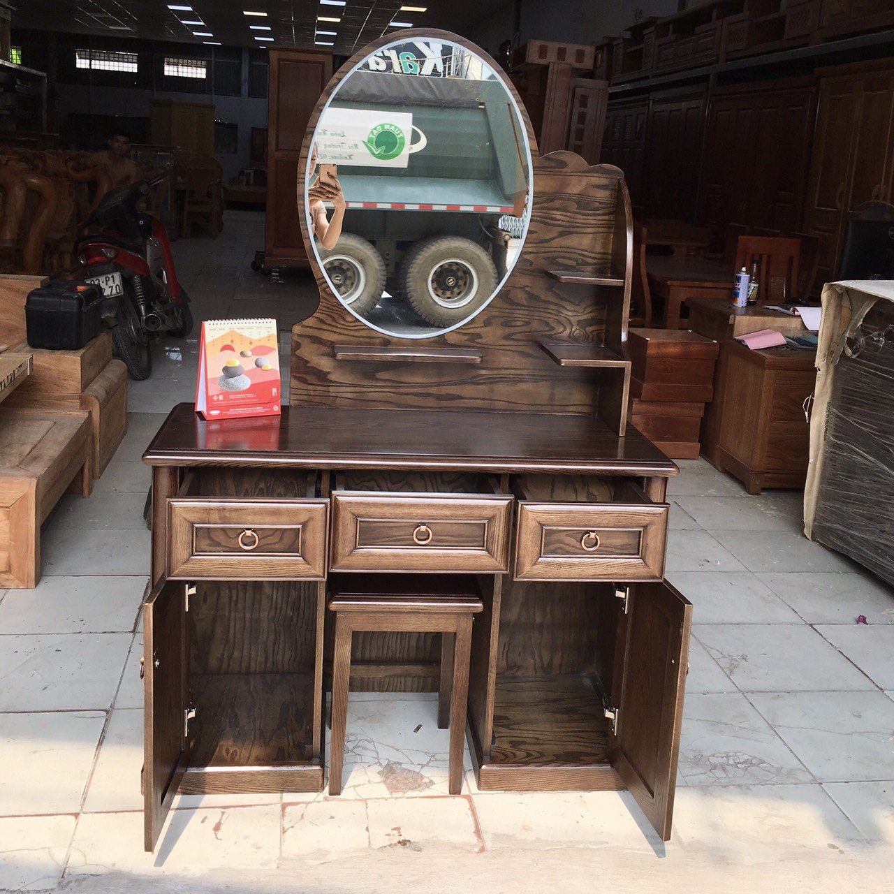 Bàn trang điểm gỗ sồi màu óc chó - gương hộp , hiện đại