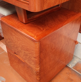 Bàn trang điểm gỗ hương đá sở hữu thiết kế ấn tượng theo phong cách hiện đại ,nổi bật những đường nét góc cạnh ,chắc chắn .Kiểu dáng khối hộp với khung gỗ tán lực thông minh giúp nâng cao khả năng chịu lực của toàn bộ thiết kế .Tạo hình khối hộp đơn giản được kết hợp tài tình với các hoa văn pano chữ nhật tạo nên nét đẹp đặc trưng khác biệt cho sản phẩm .