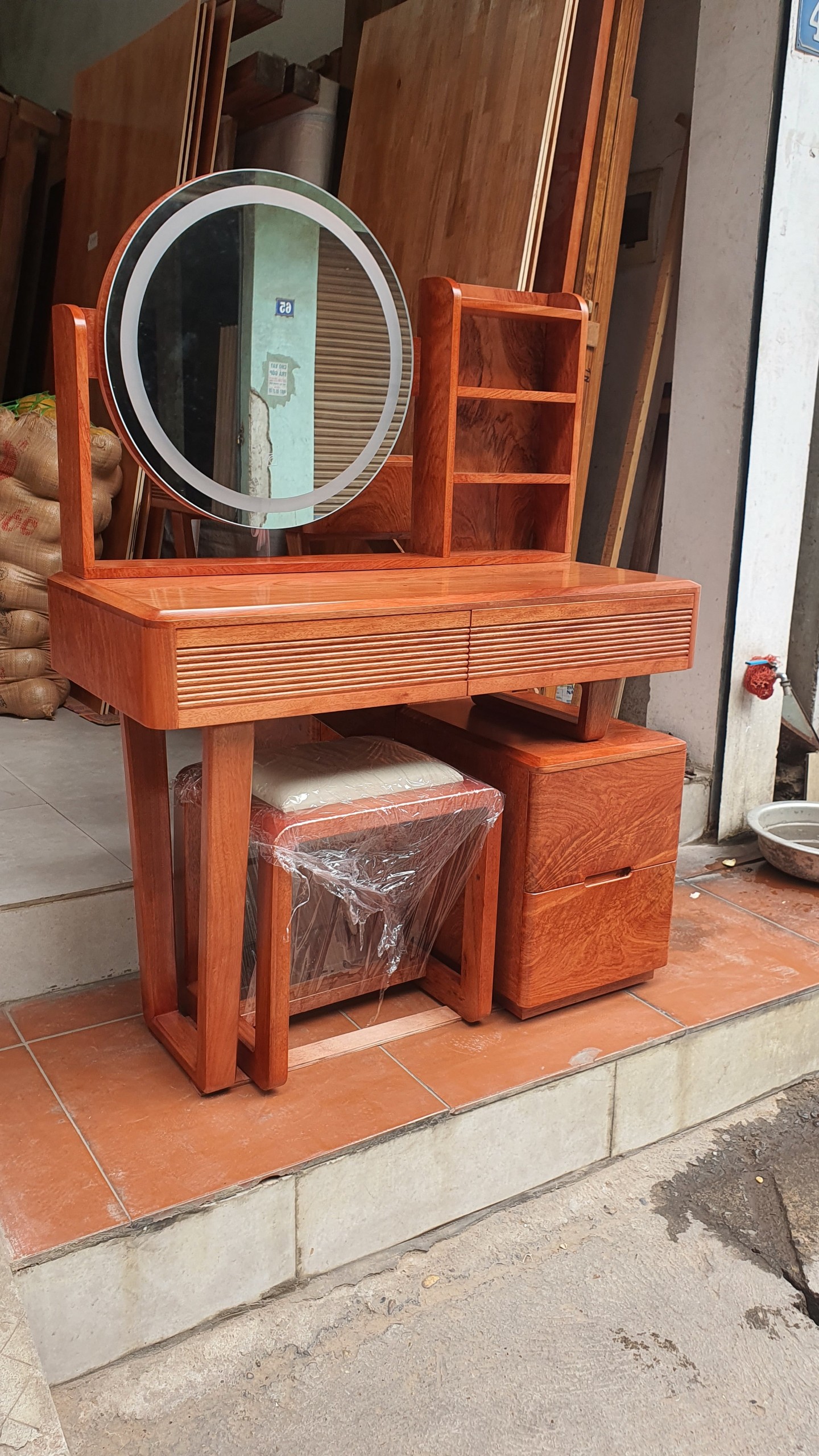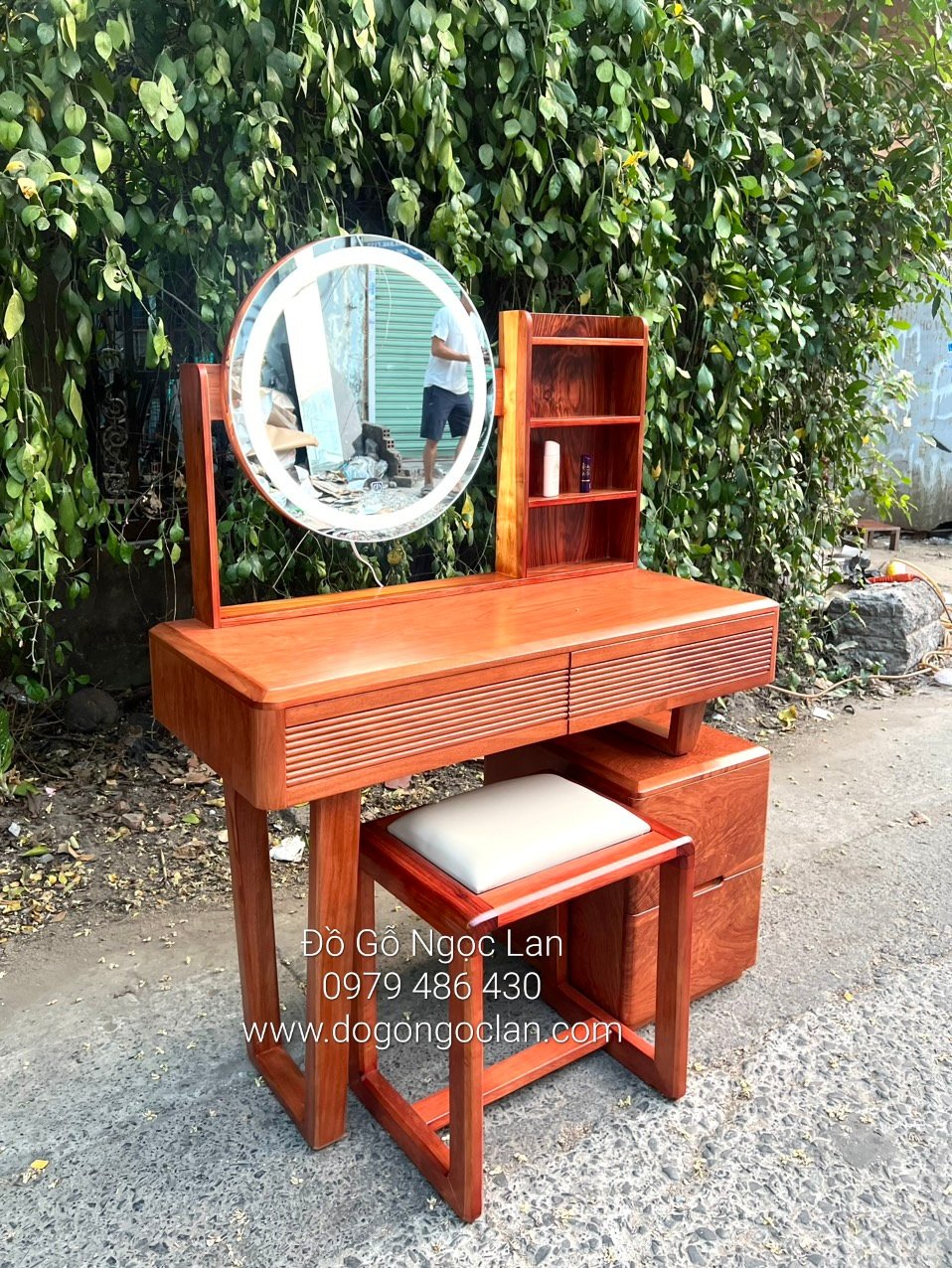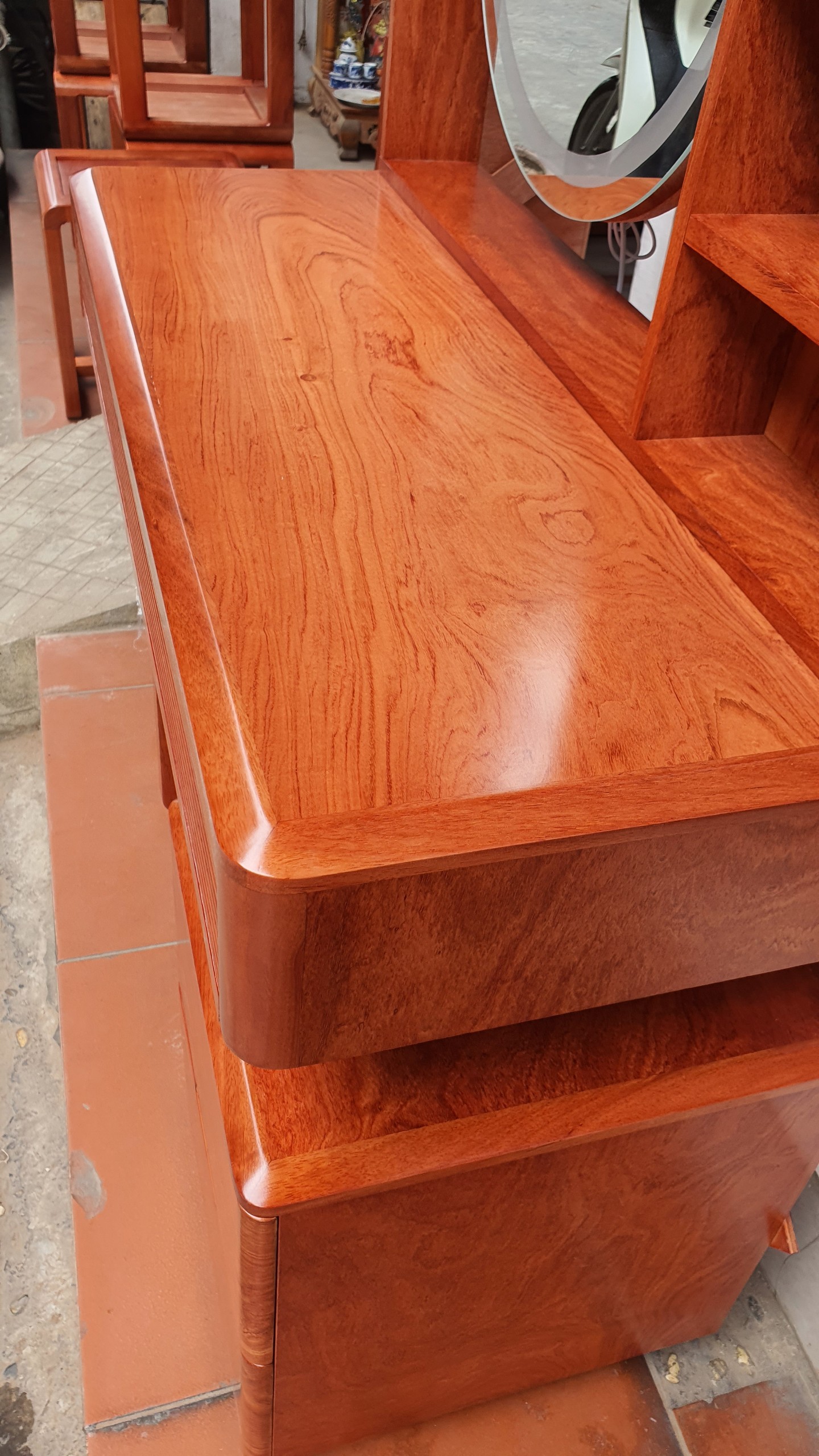 Chi tiết bàn trang điểm gỗ hương đá gương les- hiện đại