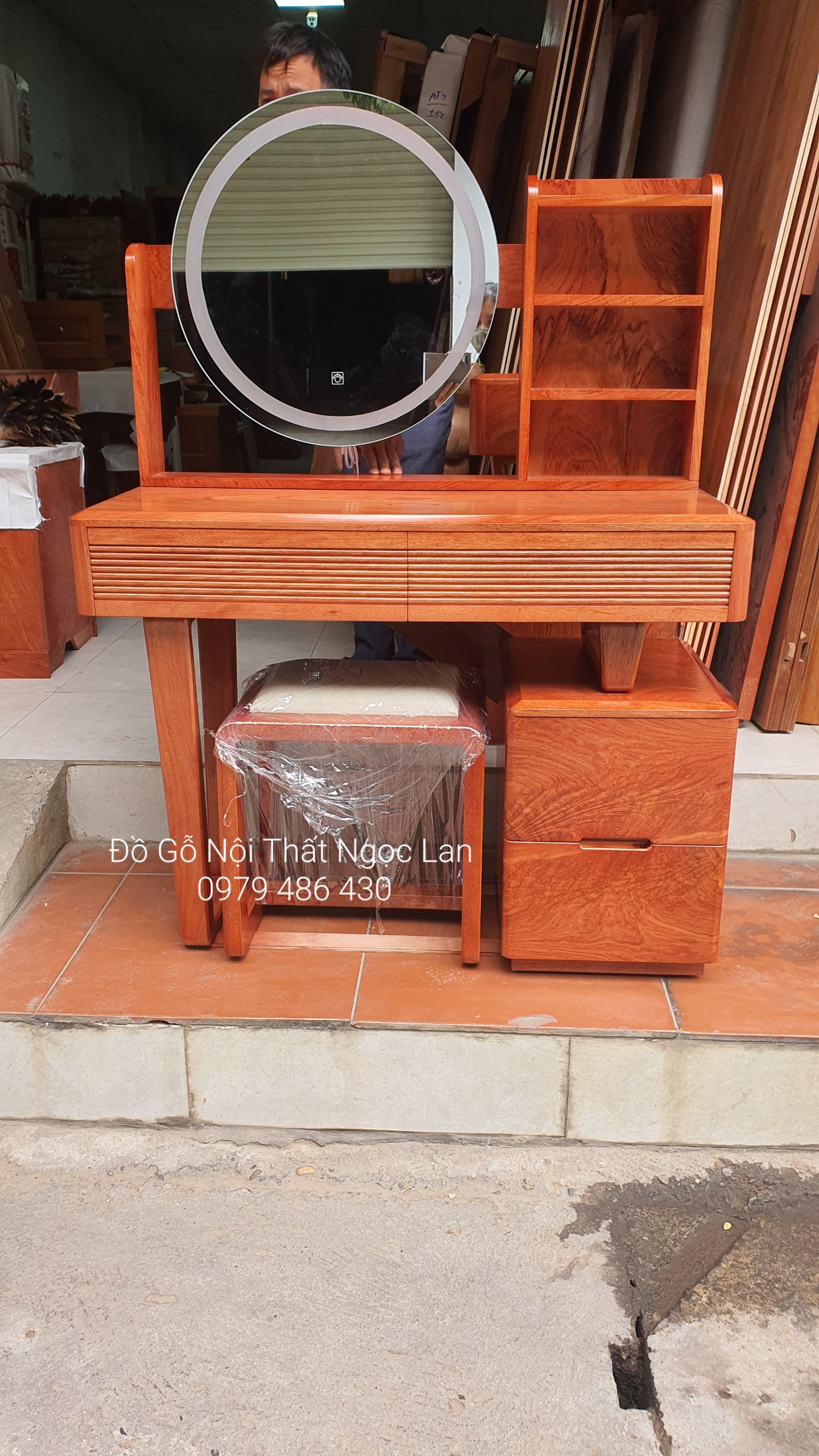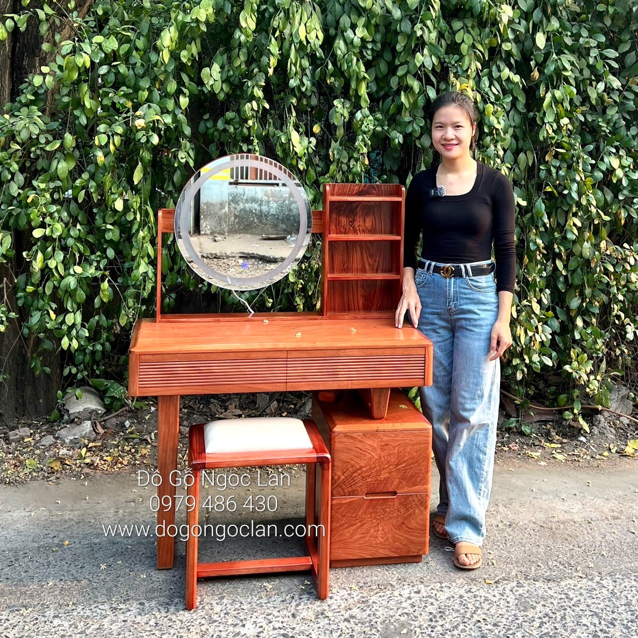 Bàn trang điểm gỗ hương đá 1m sang trọng