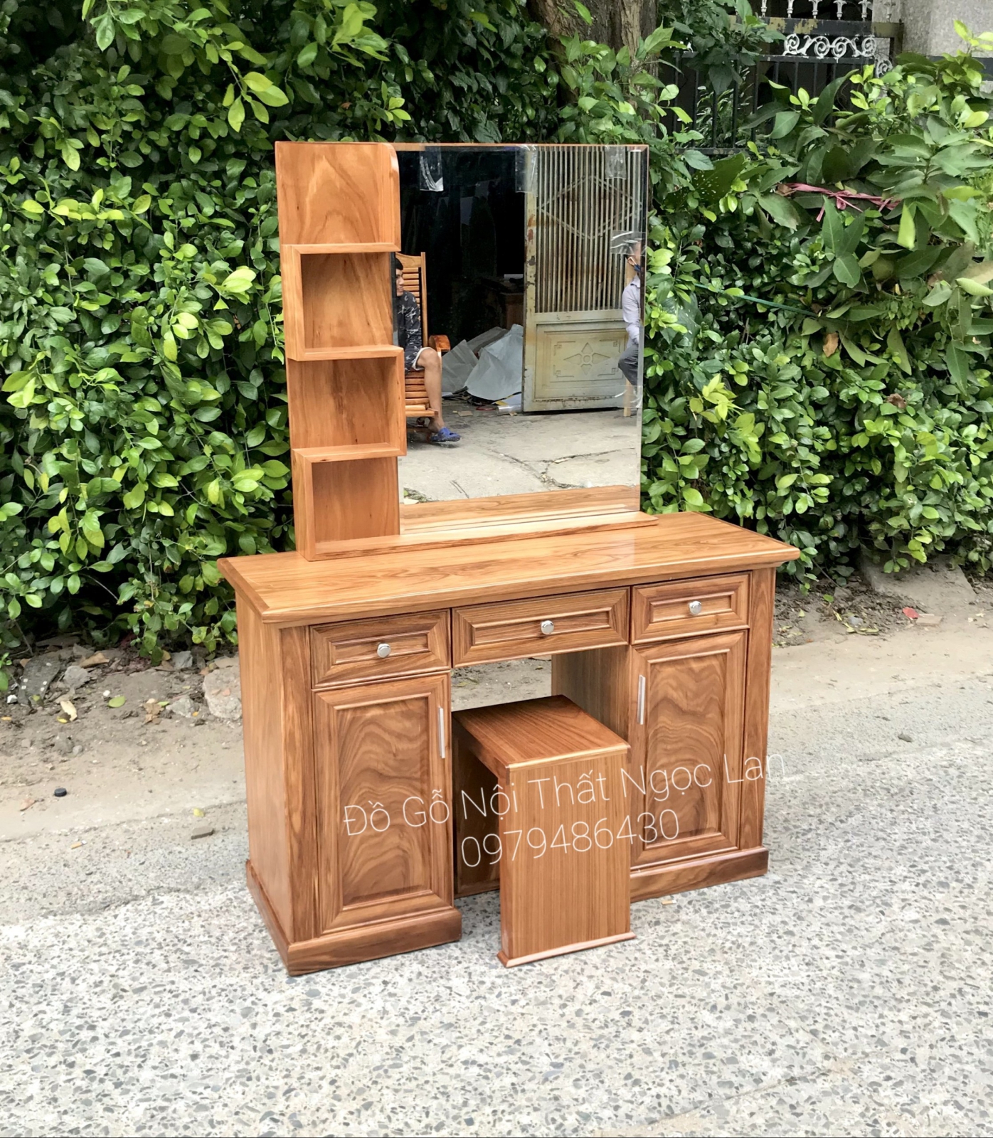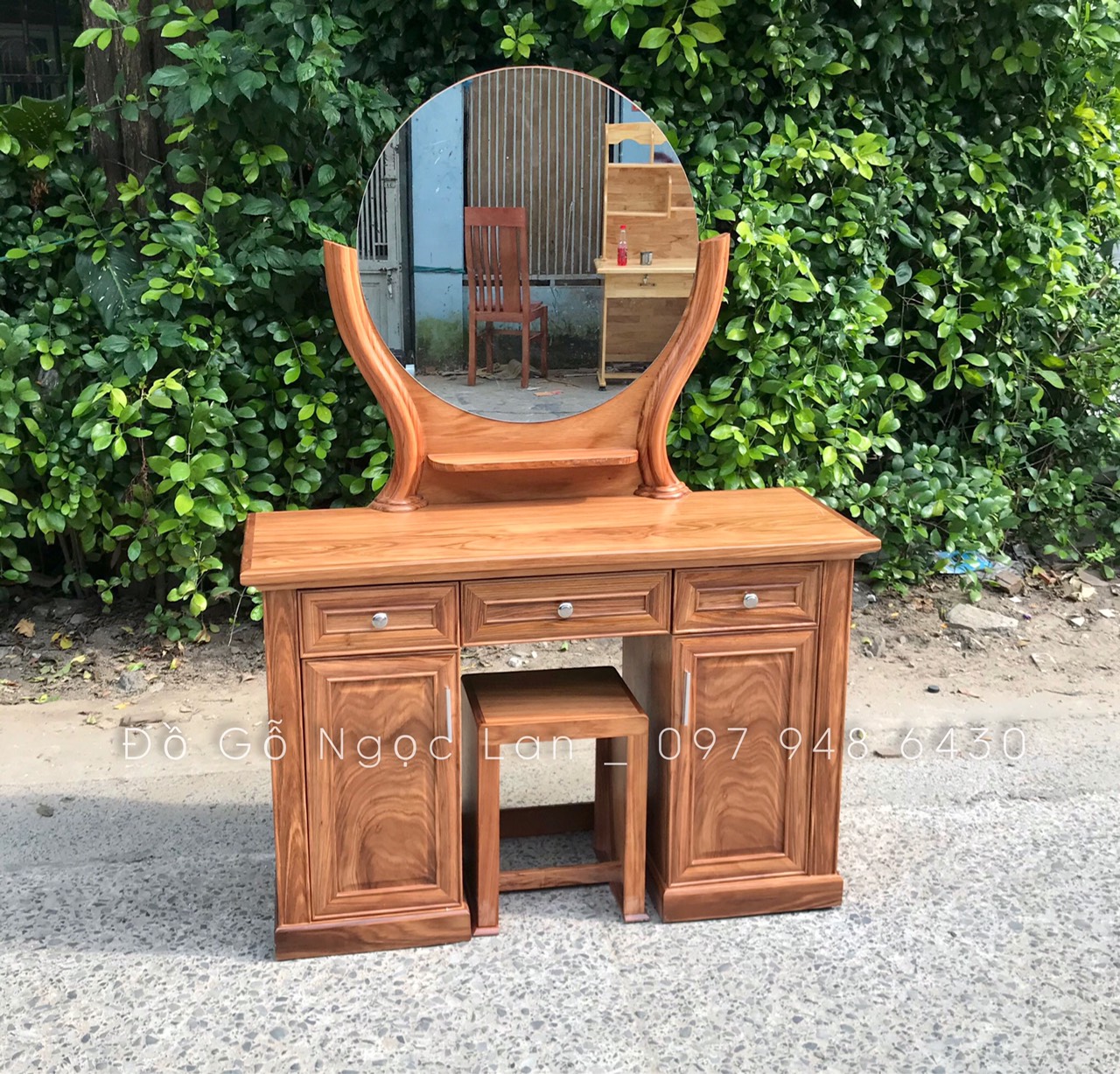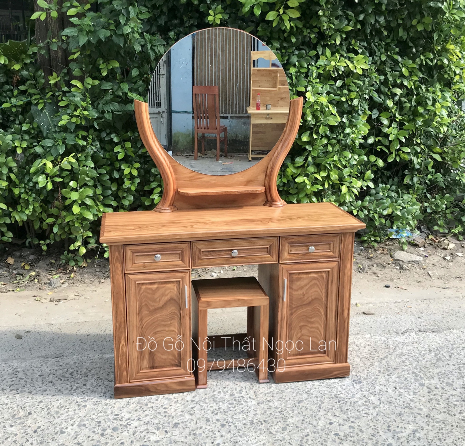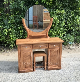 Bàn trang điểm gỗ Hương xám - gương tròn