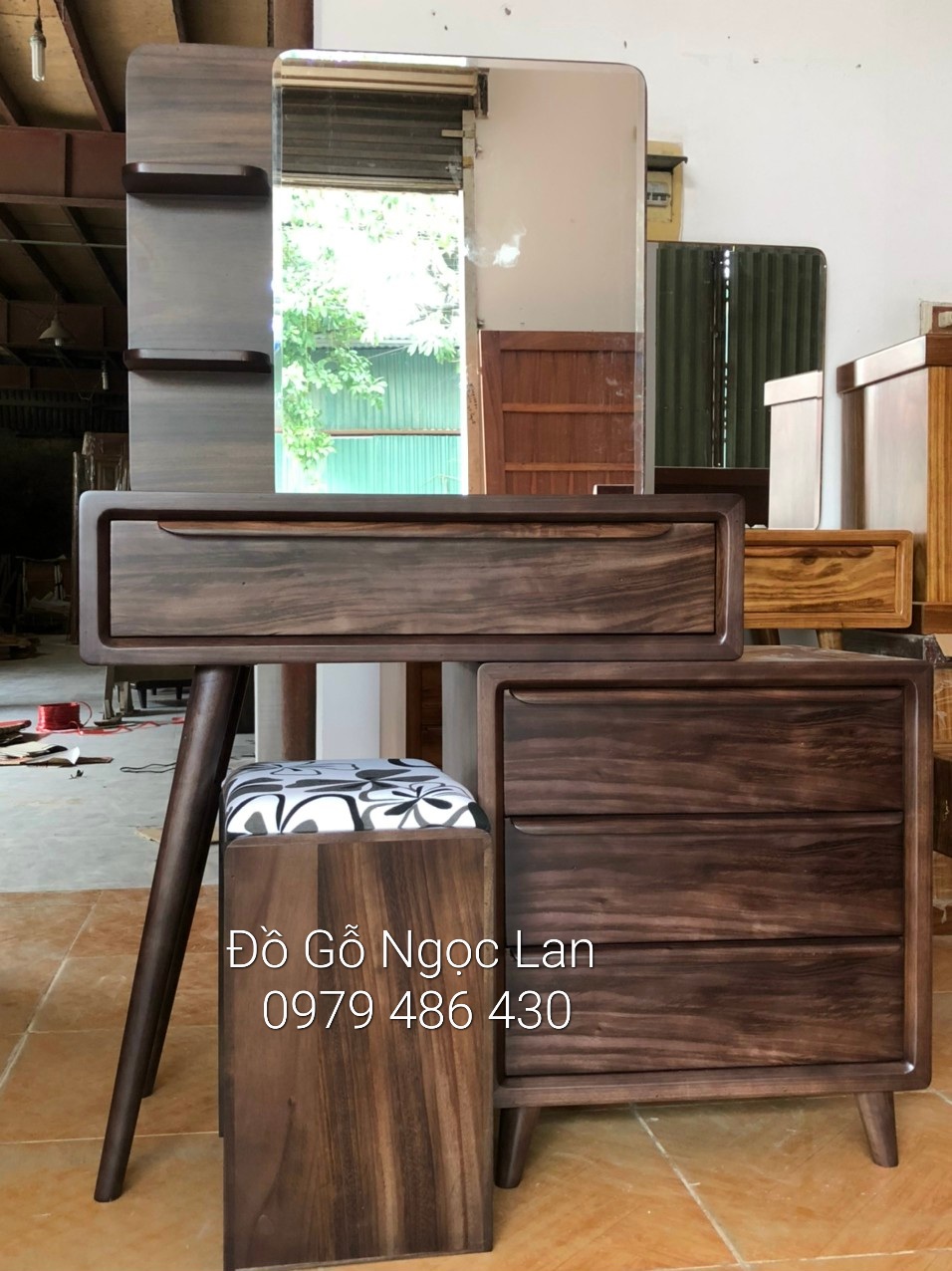 Bàn trang điểm gỗ hương xám phun màu óc chó - hiện đại